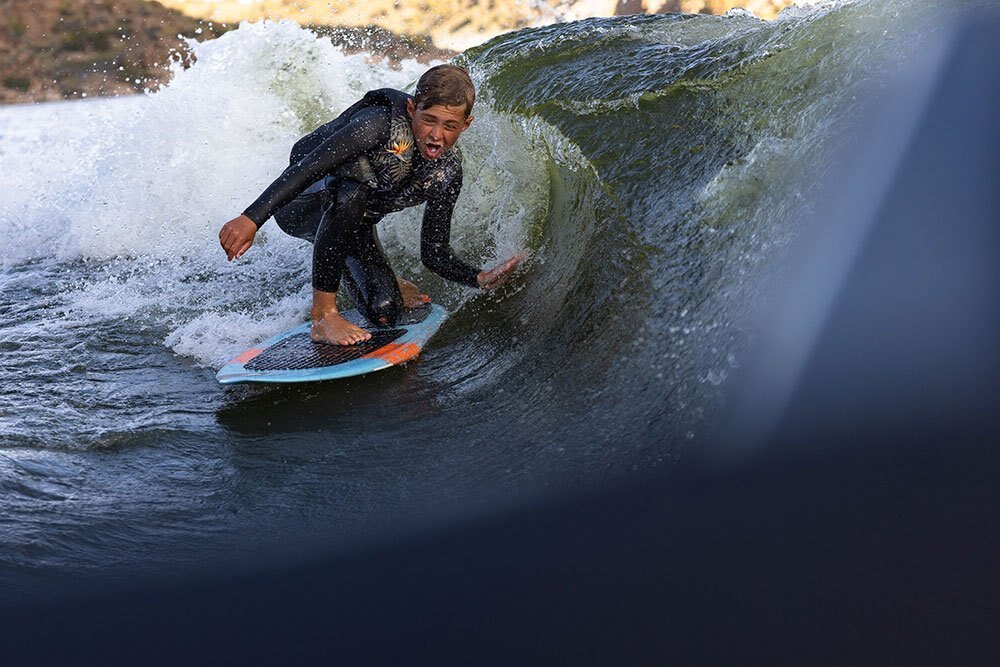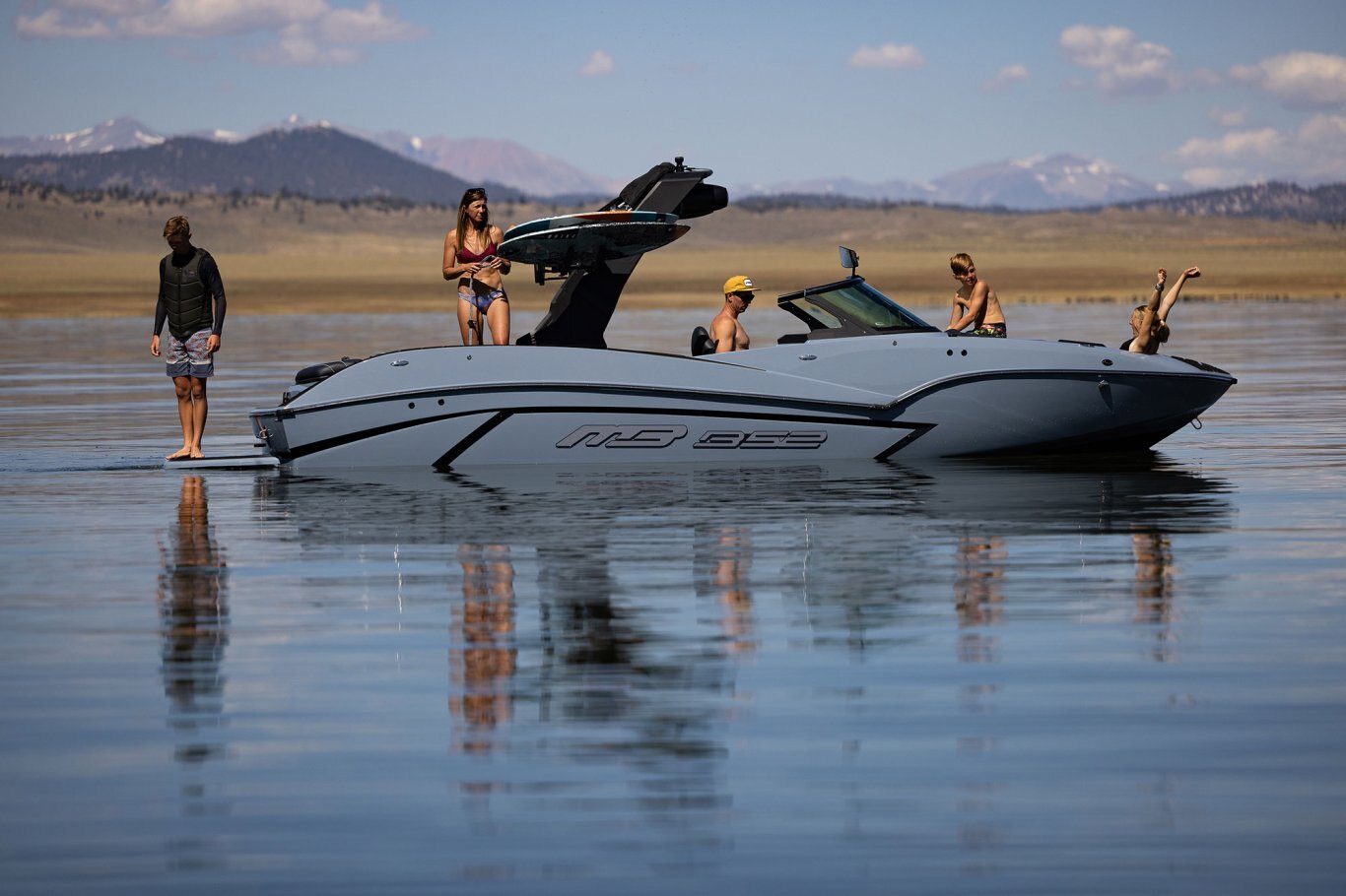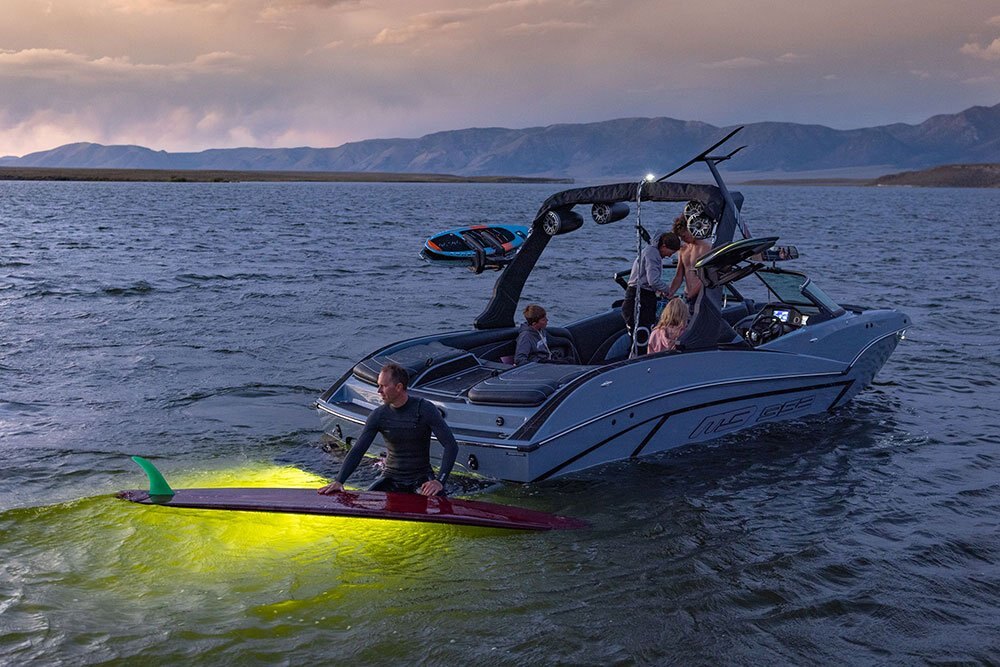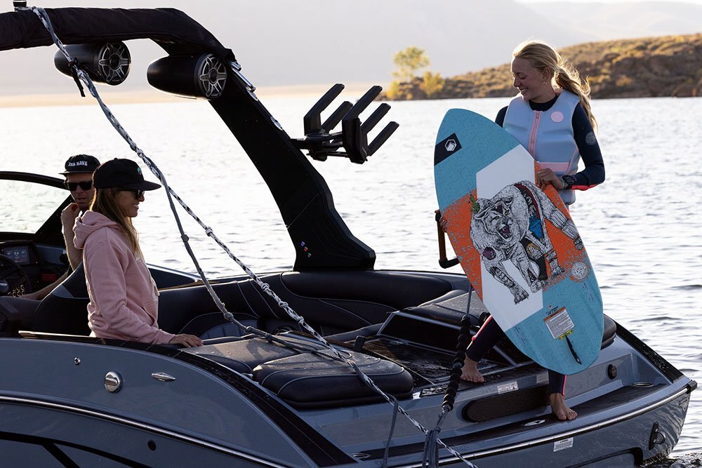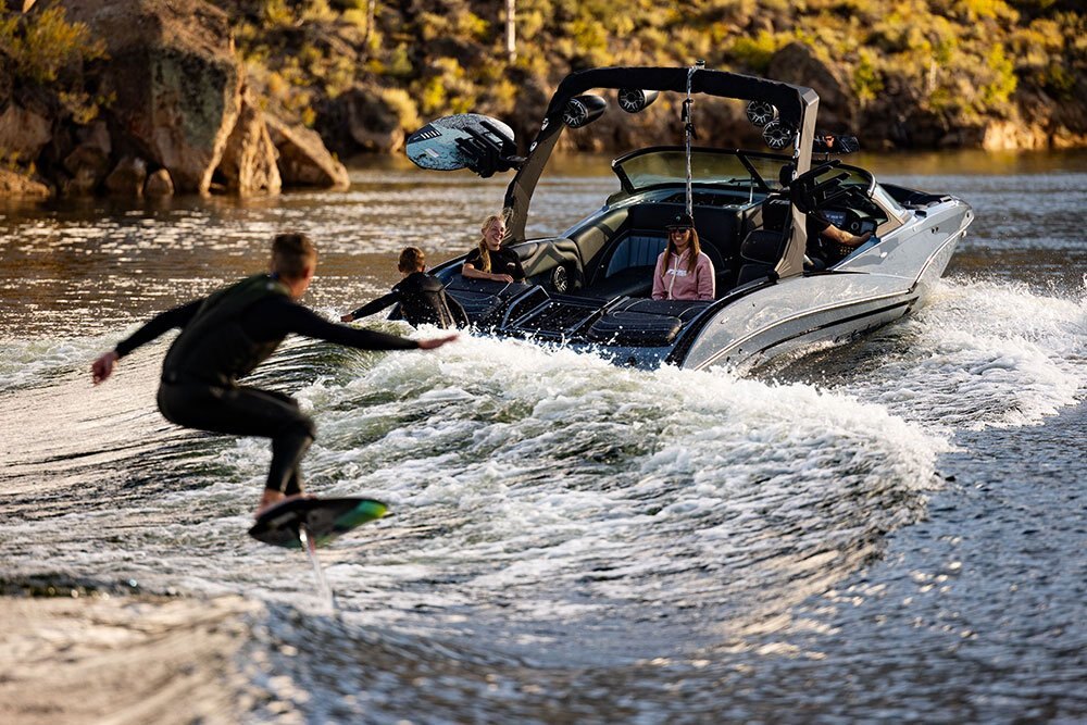 The MB Sports B52 Series was specifically designed in the early 90’s for Wakeboarding enthusiasts demanding more on the Water. Using our unique deep v hull, we’ve been able to crossover into the wakesurf world, creating one of the best waves for surfing. With our easy-to-use surf system and 30-year pedigree on the water, you’ll be spending less time tweaking and “dialing” and more time surfing #thewave.