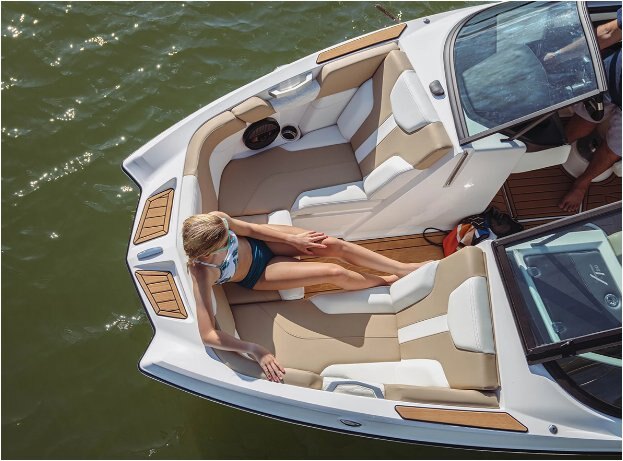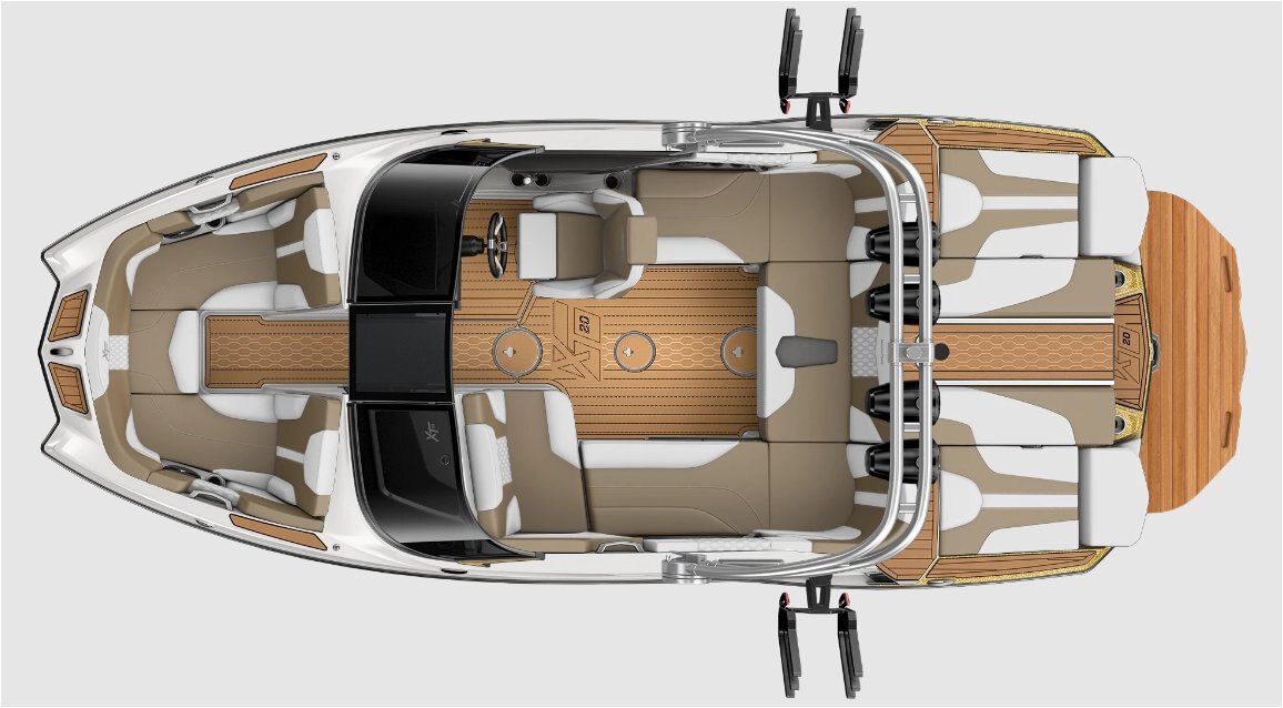 VERSATILE AND ADAPTABLE With room for 12, the XT20 provides plenty of space for your crew and their gear. Thanks to standard clamping board racks and redesigned biminis with surf sleeves, the XT20 can hold up to 10 boards. And with extensive hinged under-seat storage and plentiful above-boat shade options, you can load up for a long, fun-filled day out on the water.