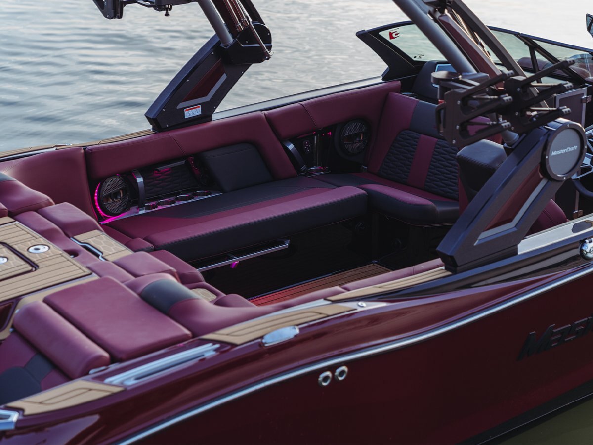 The X22 is loaded with premium amenities. An upgraded acoustic experience featuring six Klipsch speakers spreads sound expertly throughout the cockpit. Customize your sound setup with up to four tower speakers for the ultimate entertainment. Plus, with features like a power helm seat, new power board racks, and the most powerful stern thruster in the industry, the captain’s experience on the X22 is unmatched. |