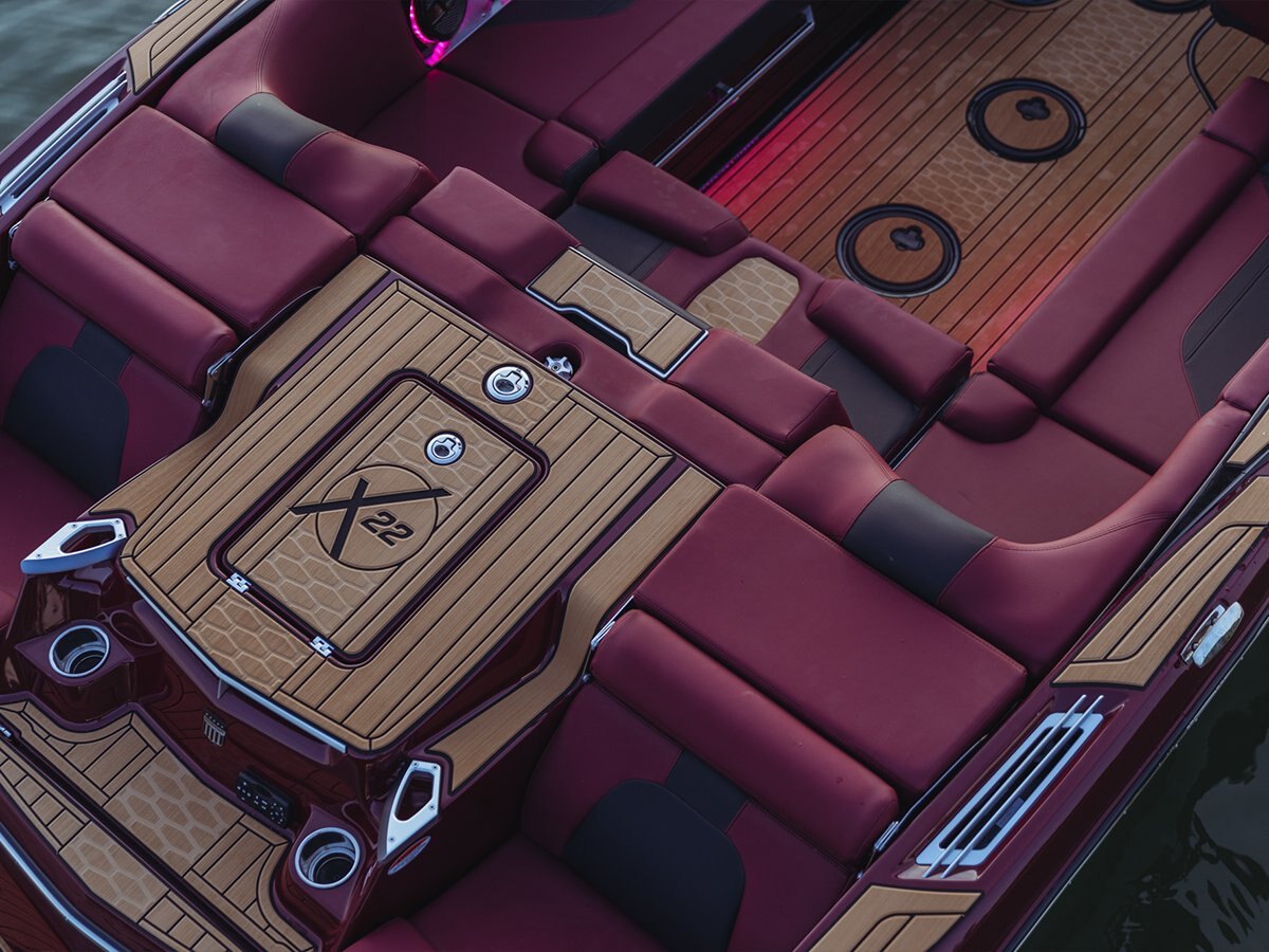 With luxury materials and thoughtful design details, the distinguished X22 offers a premium experience as soon as you step aboard. With endless color options, you can seamlessly match your hull design to your tower, windshield, and badging to turn heads. Dark, rich colors can be added to your interior as well with CoolFeel vinyl, which stays 30% cooler than traditional marine upholstery. |