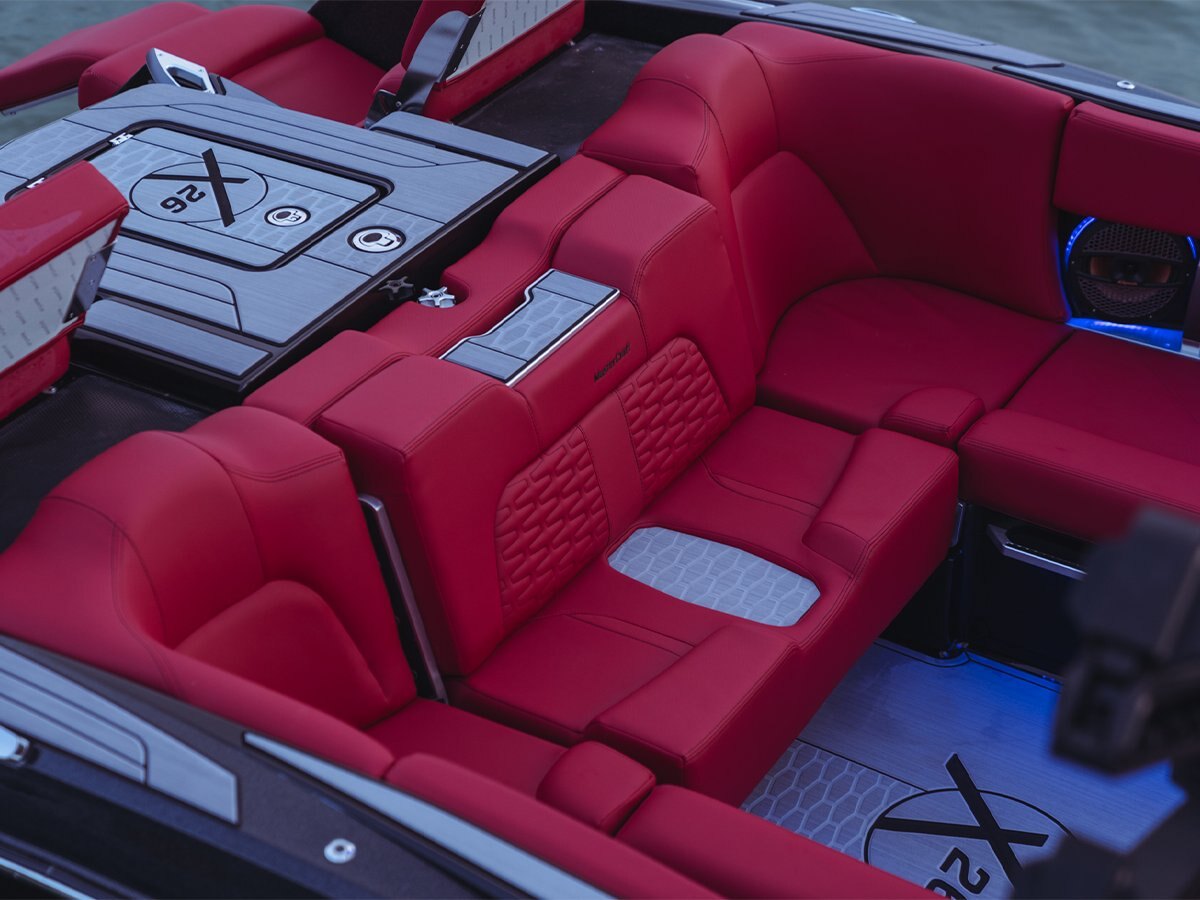 If you are in the market for the most luxurious amenities, the X26 is your solution. From the available refrigerator and head to the patented transom lounge seats, the X26 delivers the most elevated towboat experience on the water. To take the MasterCraft convenience and comfort to the next level and option your X26 with the industry’s most powerful stern thruster and all-new power board racks. |
