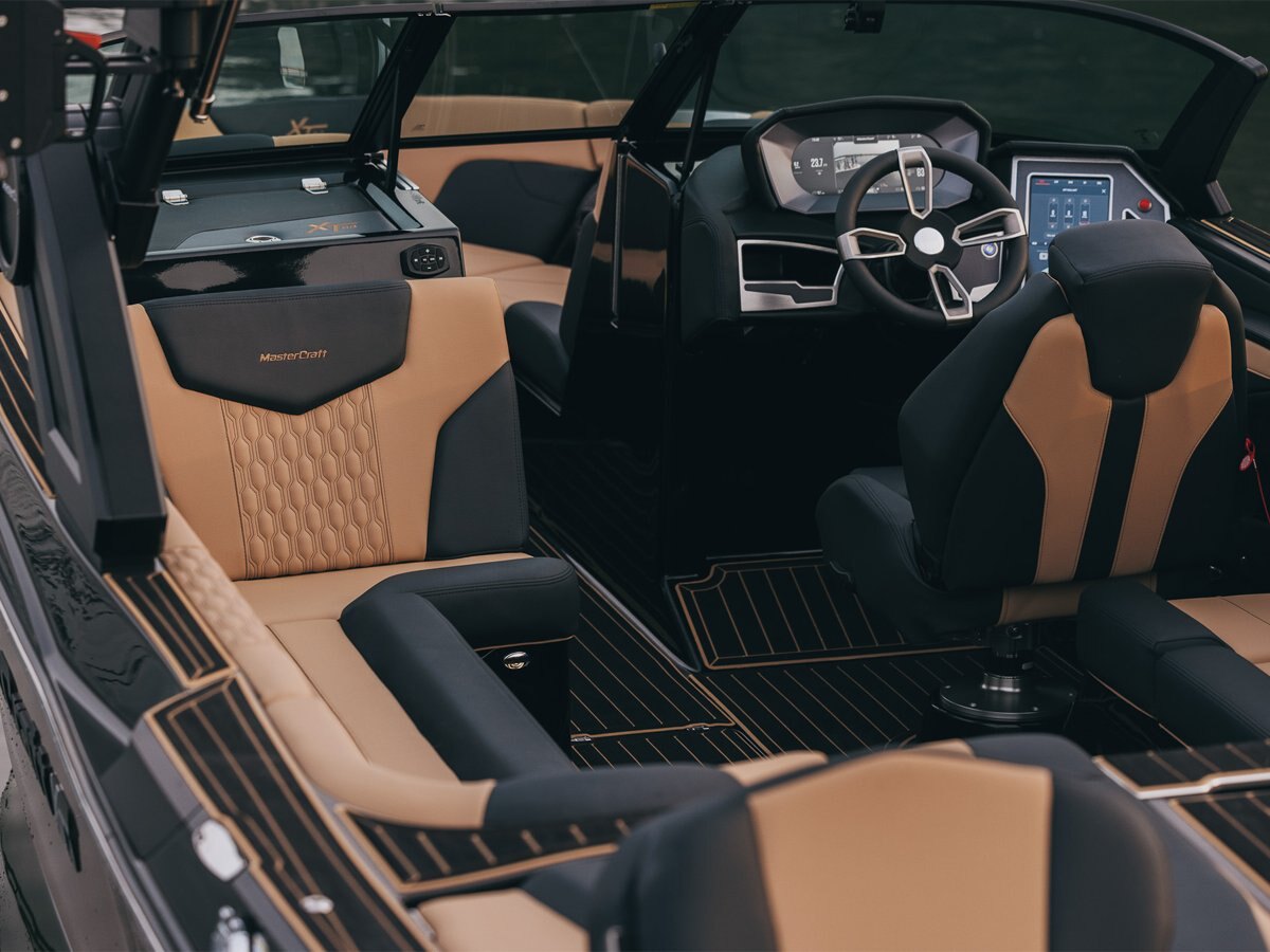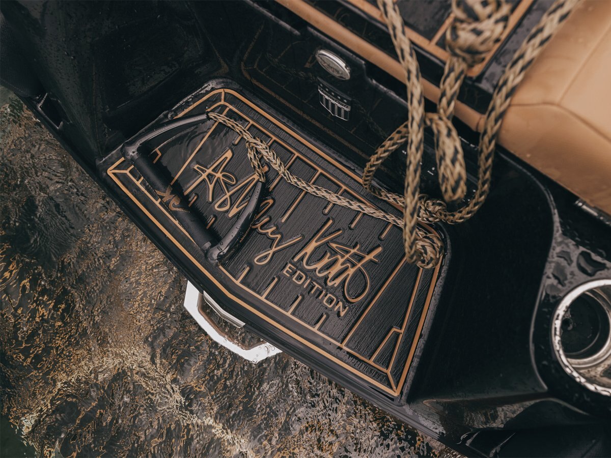 Presenting the Ashley Kidd Edition XT23, a remarkable fusion of the finest MasterCraft features with an aesthetic that commands attention. Make heads turn with exclusive black SeaDek, custom ‘Golden Hour’ metal flake finish, and an Ashley Kidd signature step pad—guaranteeing an impressive presence while delivering world-class wave performance. Another standout feature is the custom-designed dog bowl drawer, allowing you to bring your furry companion along for the ride without sacrificing convenience or style. Crafted with exceptional materials, comfort, and performance in mind, the Ashley Kidd Edition XT23 makes a statement on the water. If you're on the lookout for wakesurfing excellence, your search ends with the Ashley Kidd Edition MasterCraft XT23. With its unmatched blend of style, performance, and exclusivity, this special XT23 is sure to capture attention wherever it goes. |
