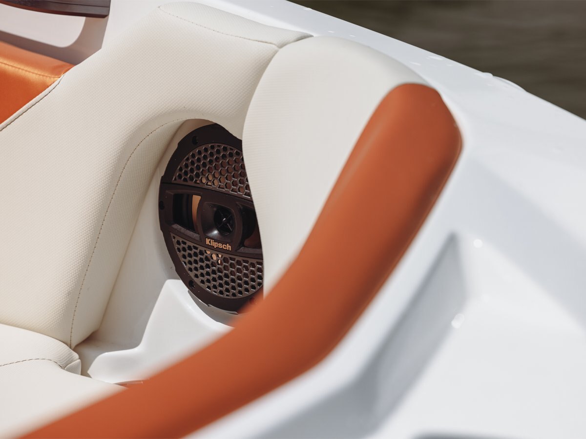 Enjoy the comfort and convenience of ergonomic seating and easily accessible hinged storage. Beat the heat with the flip-down swimstep and CoolFeel vinyl, ensuring a 30% cooler experience, even during the hottest summer days. Plus, with the industry's most board storage, standard clamping board racks and optional rear locker nets, the NXT20 has an impressive amount of storage, especially for a 20' boat. |