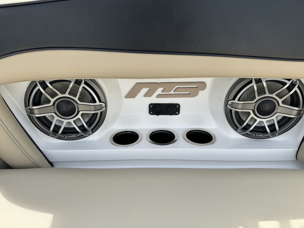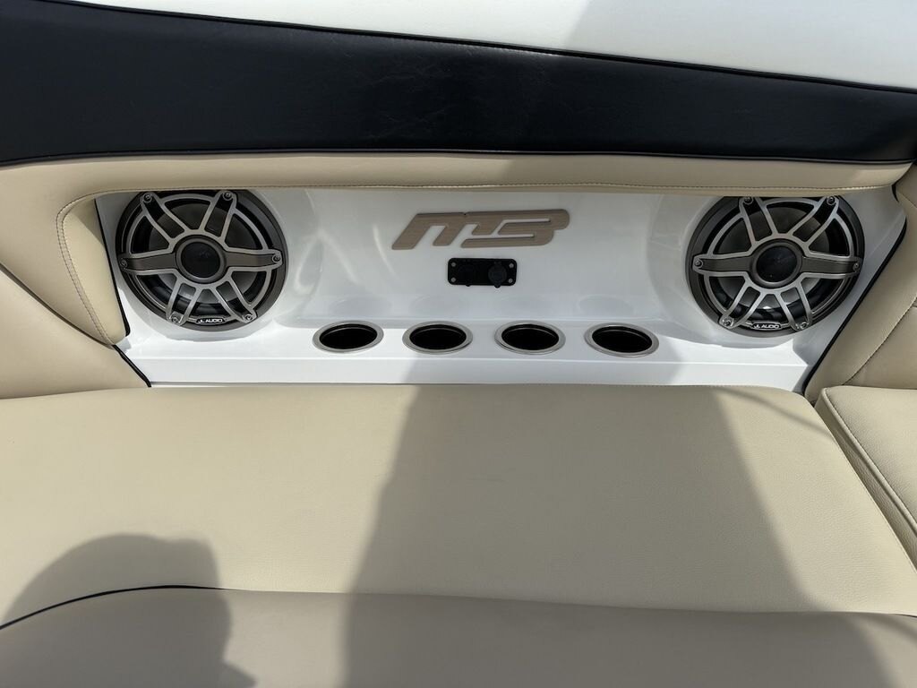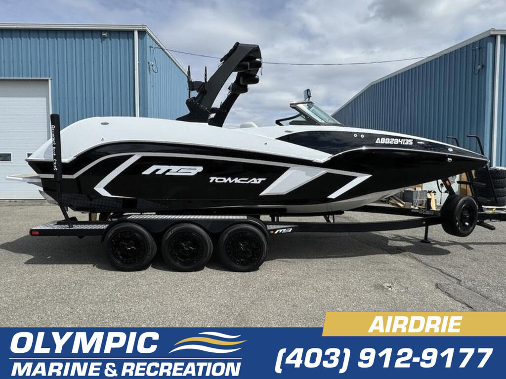 Boat Options Power Tower Upgraded Board Racks w/ Tower (PTM) - (Arctic White) Upgraded Screen W/ Speakers MB Switch Surf W/ Cav Plate Ballast - (Rear and Bow) Plug and Play - 2100lbs Subfloor - 3150lbs High Altitude Prop - 15X12.50 - .075 Pro Indmar Raptor 575 6.2L 510HP Roush Supercharged Flooring - Gator Step Plank Kit - Two Colour Option Top - Sand Stone Bottom - Black Surf Lighting Docking Lights JL Audio 12” Subwoofer Upgrade (Replaces 10” Sub) JL Audio 8.8” Cockpit Speakers (Cockpit) JL Audio 6” Bow Speakers JL Audio Javelin 5Ch Amp JL Audio Transom Remote RGB Theatre Lighting Heater - Cabin (2 Snorkels) Heater - Drivers Seat Additional Pair Cleats Hatch Runway Trailer Hooks Hinged Seating Swim Step Ladder Surf Pipe Fender Clips Powder Coat - Frame Jet Black Powder Coat - Mirror/Wing/Racks Mirror - Jet Black Wings - Jet Black Racks - Arctic White Powder Coat - Interior Main - Jet Black Accent - Jet Black Other - Jet Black Powder Coat - Exterior - Logo MB / Tomcat Base - Jet Black Insert - Arctic White Other - Arctic White Powder Coat - Tower Main - Jet Black Panels - Jet Black Base - Jet Black Powder Coat - Transom - No Colour