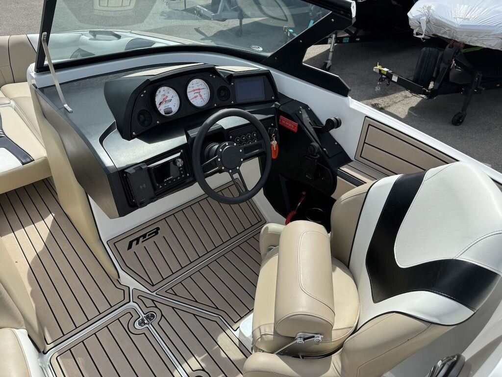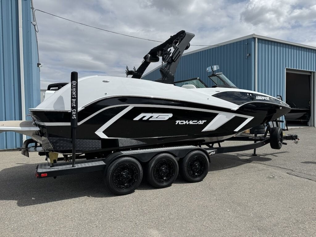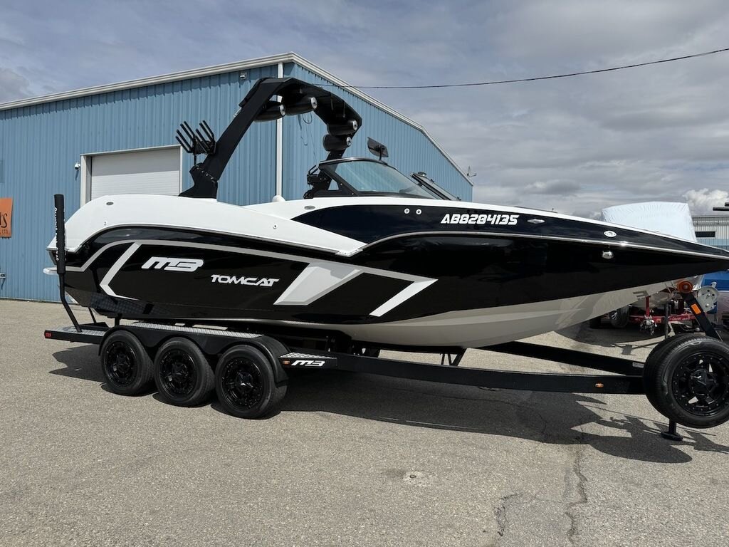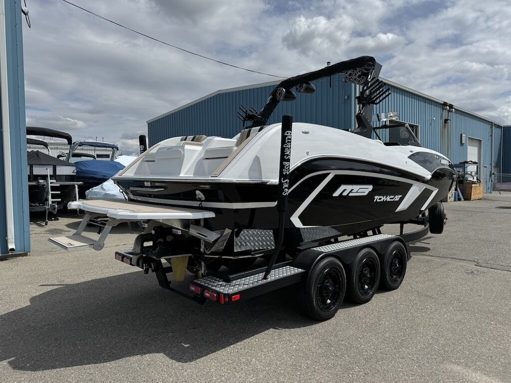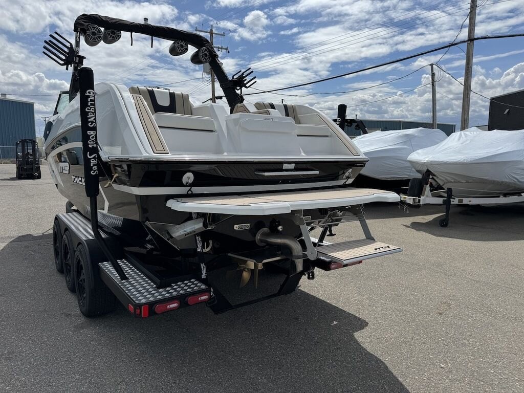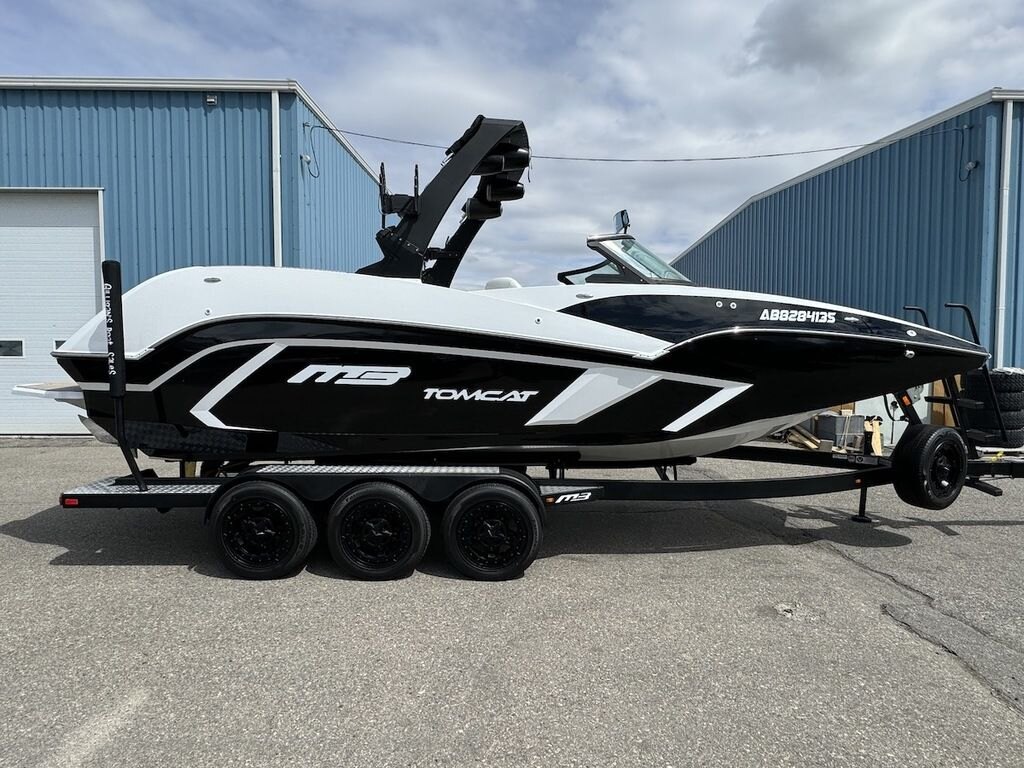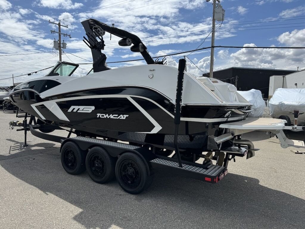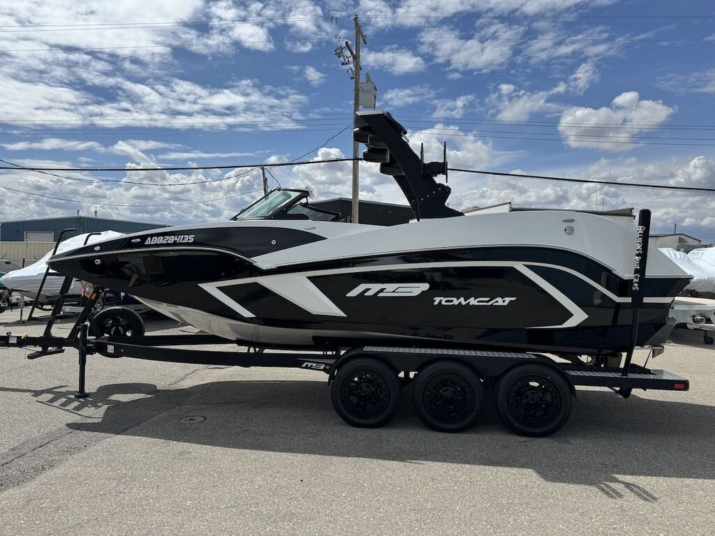 The Tomcat F24 Alpha is the ultimate wakeboard boat. MB's team riders Trever Maur, Josh Twelker, and Randall Harris spent weeks on the water helping them perfect the best all around wakeboat in the industry. With high sides, rear facing transom seating, and a pickle fork bow, this boat is ready to turn amateurs into pros. Options include: Indmar Raptor 6.2L Roush Supercharged 575, Power Tower, Metallic Gel Coat upgrade, PTM Clamping Board Racks, MB Switch Surf System, MB Plug and Play 3150 lbs. Ballast System, Gator Step floor kit, Surf Lights, 4 Tower Speakers, 12" Subwoofer, 8.8 Cockpit Speakers, Heater, Heated Captains Chair, Fender Clips, Bimini with Board Storage, Full One Piece Cover, Dual Batteries with isolation switch, Flip Up Rear facing Seats, Touch Screen Dash, Custom Triple Axle Trailer with Matching Spare.