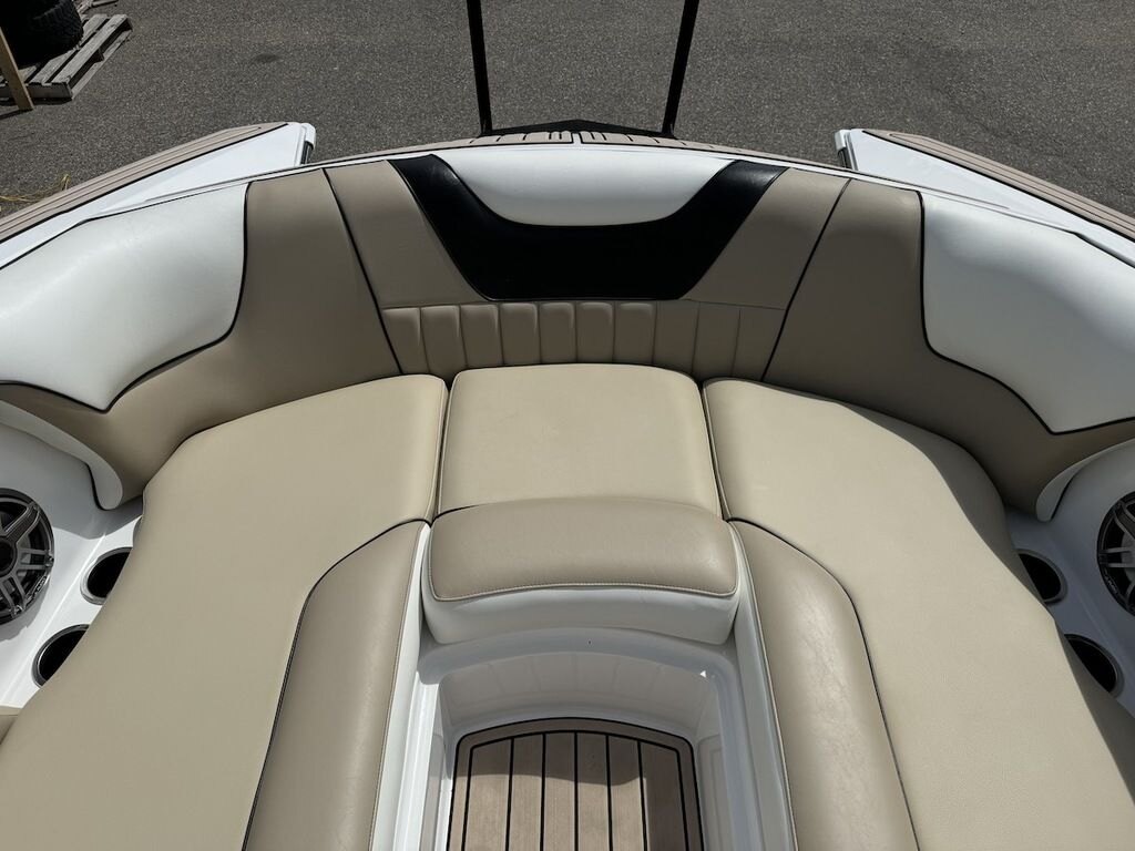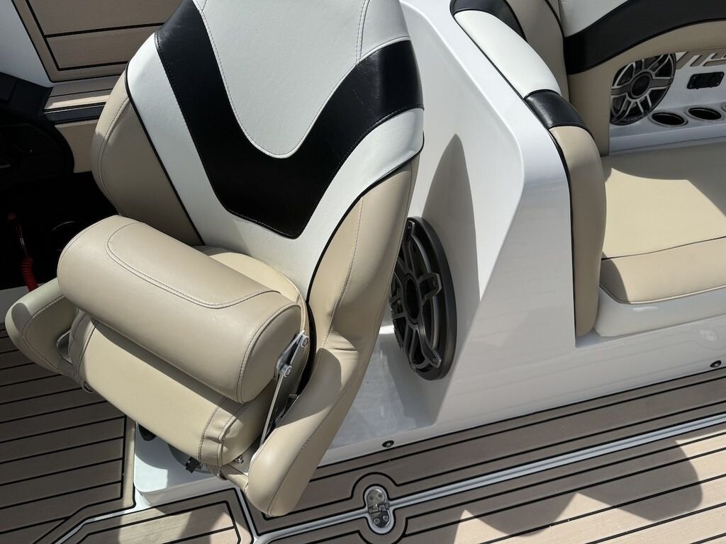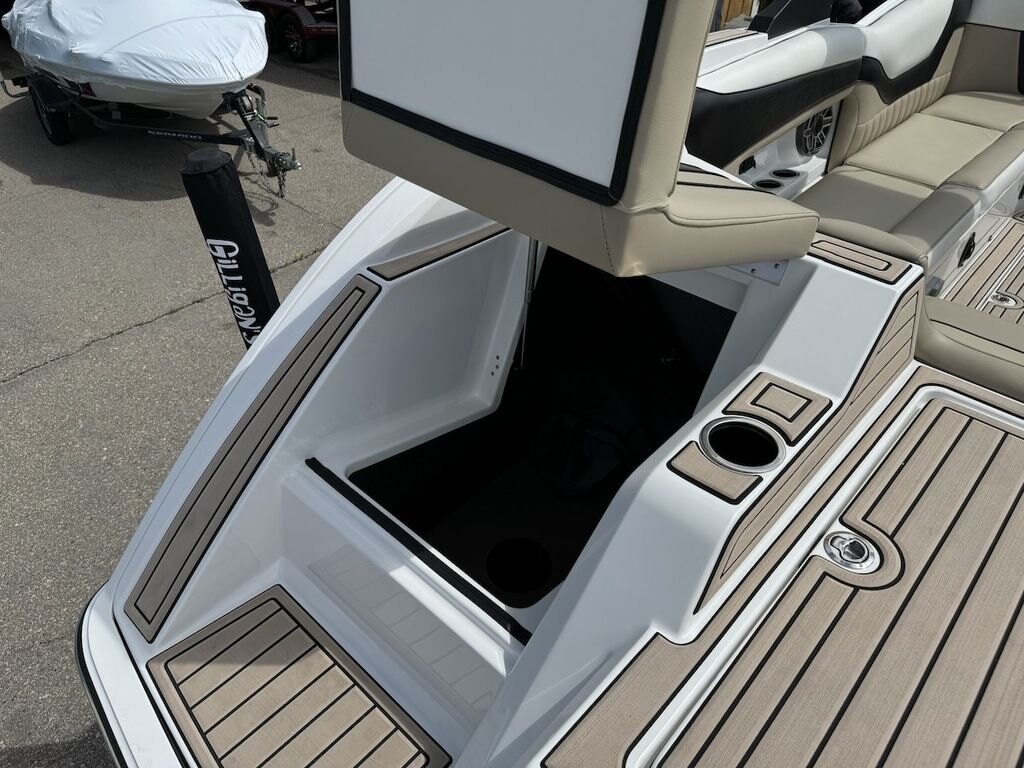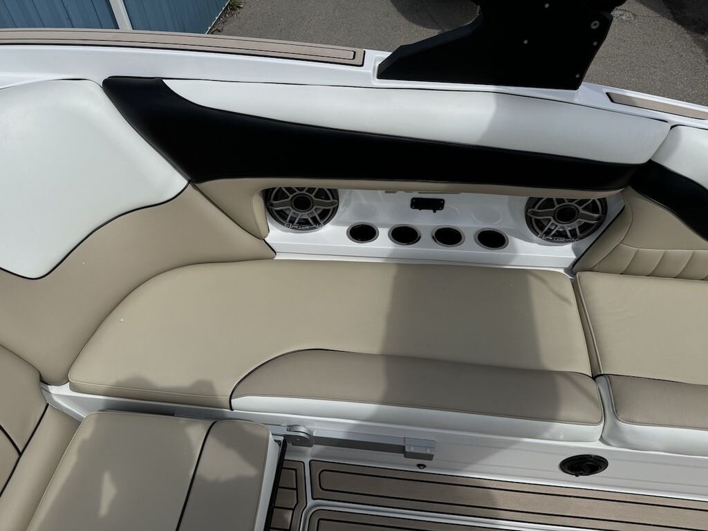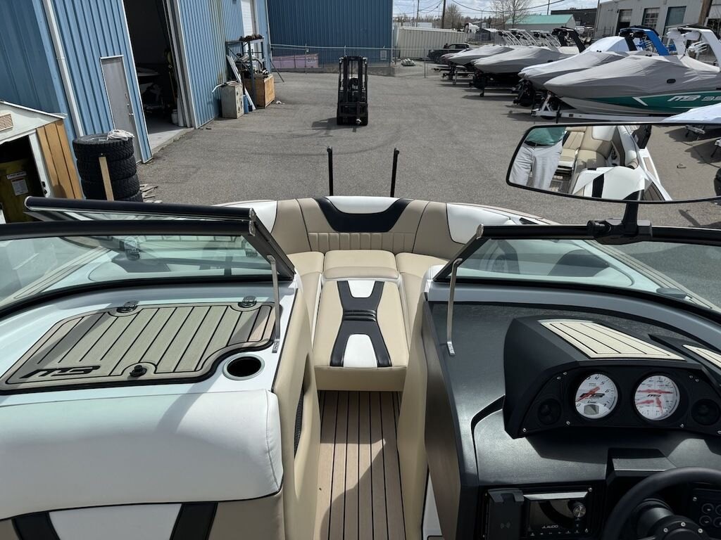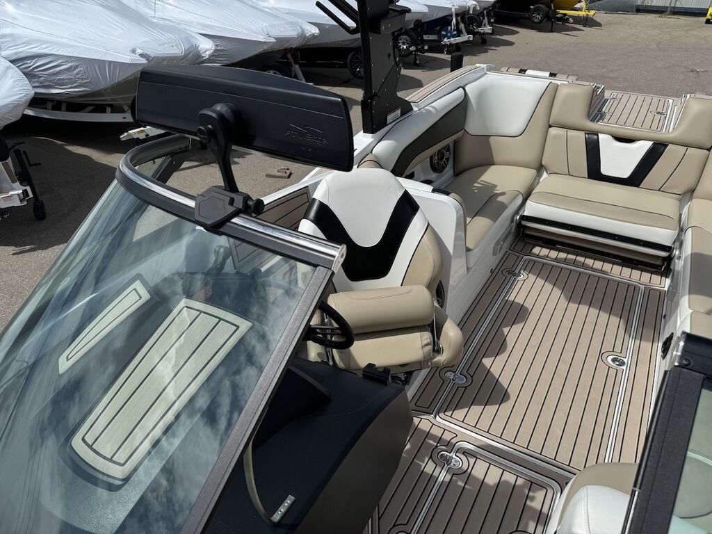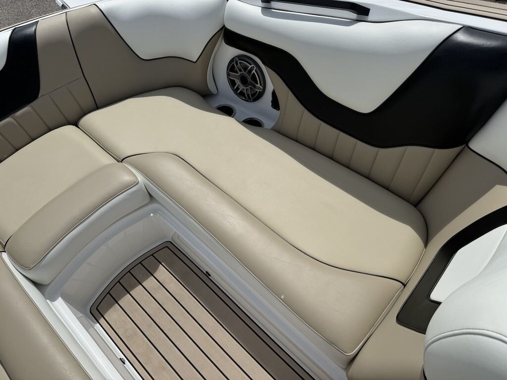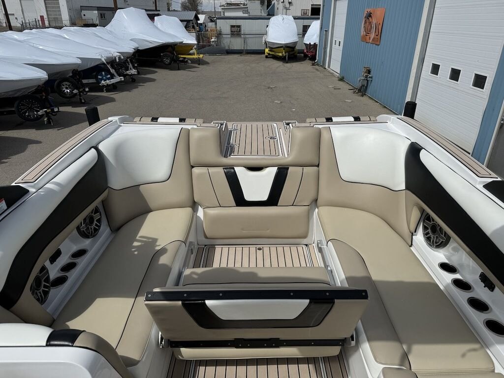 The Tomcat F24 Alpha is the ultimate wakeboard boat. MB's team riders Trever Maur, Josh Twelker, and Randall Harris spent weeks on the water helping them perfect the best all around wakeboat in the industry. With high sides, rear facing transom seating, and a pickle fork bow, this boat is ready to turn amateurs into pros. Options include: Indmar Raptor 6.2L Roush Supercharged 575, Power Tower, Metallic Gel Coat upgrade, PTM Clamping Board Racks, MB Switch Surf System, MB Plug and Play 3150 lbs. Ballast System, Gator Step floor kit, Surf Lights, 4 Tower Speakers, 12" Subwoofer, 8.8 Cockpit Speakers, Heater, Heated Captains Chair, Fender Clips, Bimini with Board Storage, Full One Piece Cover, Dual Batteries with isolation switch, Flip Up Rear facing Seats, Touch Screen Dash, Custom Triple Axle Trailer with Matching Spare.