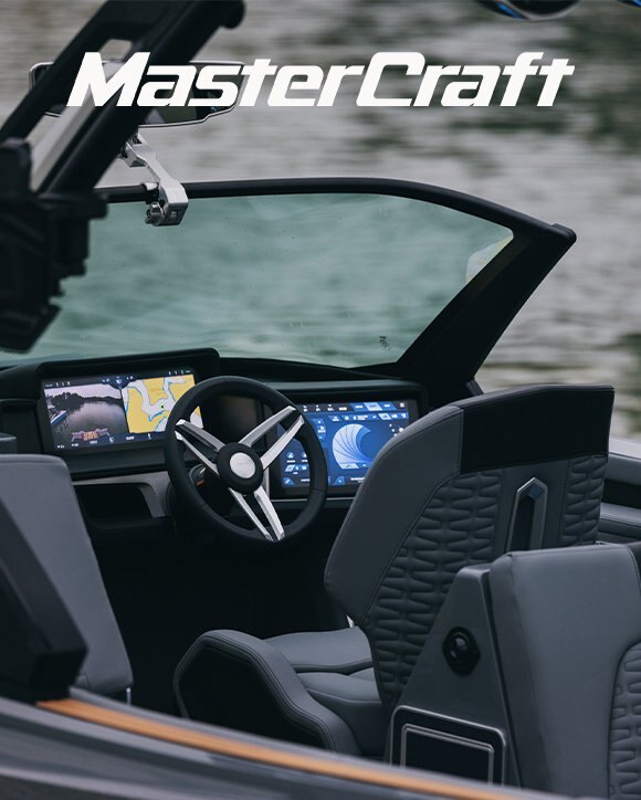 For 2025, the X models include a rudder position sensor, the MasterCraft MyDrive rotary encoder with hotkeys, an improved helm seat, and a standard wireless phone charger.