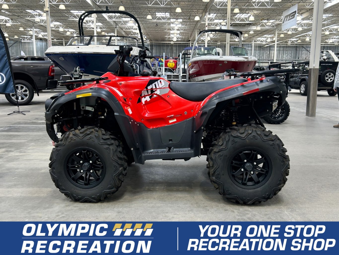 The 2022 Argo Xplorer XRT?570 LE is a rugged two-seat ATV built for both trail excitement and work duties. Powered by a liquid-cooled 561?cc single-cylinder EFI engine with SOHC design, it produces dependable power for any adventure. An automatic CVT transmission, selectable 2WD/4WD with electric differential lock, and optional low or reverse gears ensure smooth, confident traction in varied terrain. Sporting a heavy-duty steel frame and 26-inch Maxxis tires mounted on 14-inch aluminum wheels, this model balances durability with off-road performance. Its fully independent double A-arm suspension offers generous travel—220?mm front and 239?mm rear—for a comfortable ride over bumps and rough surfaces. It boasts 12.6 inches of ground clearance to easily clear obstacles. Equipped for serious utility, the XRT?570 LE includes a 3,000-lb winch, heavy steel front and rear racks rated for 99?lb and 165?lb, a 2-inch receiver hitch towing up to 1,225?lb, and LED low/high beam headlights with daytime running lights. The electric power steering features speed-sensitive assist with adjustable levels, making tight trails and long rides less tiring. A multifunction digital display offers essential info—speed, RPM, fuel, drive mode, EPS setting—while crash protection from full guard plating enhances durability. With a dry weight of approximately 874?lb, a 4.2-gallon fuel tank, and seating for two, the XRT?570 LE delivers a powerful blend of comfort, capability, and confidence for riders seeking an all-purpose off-road companion.