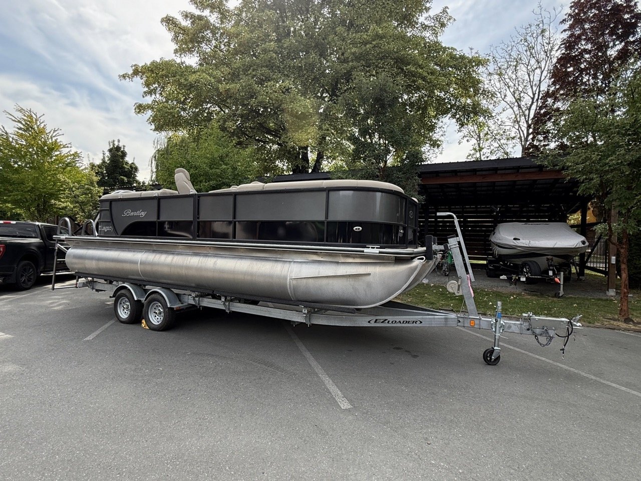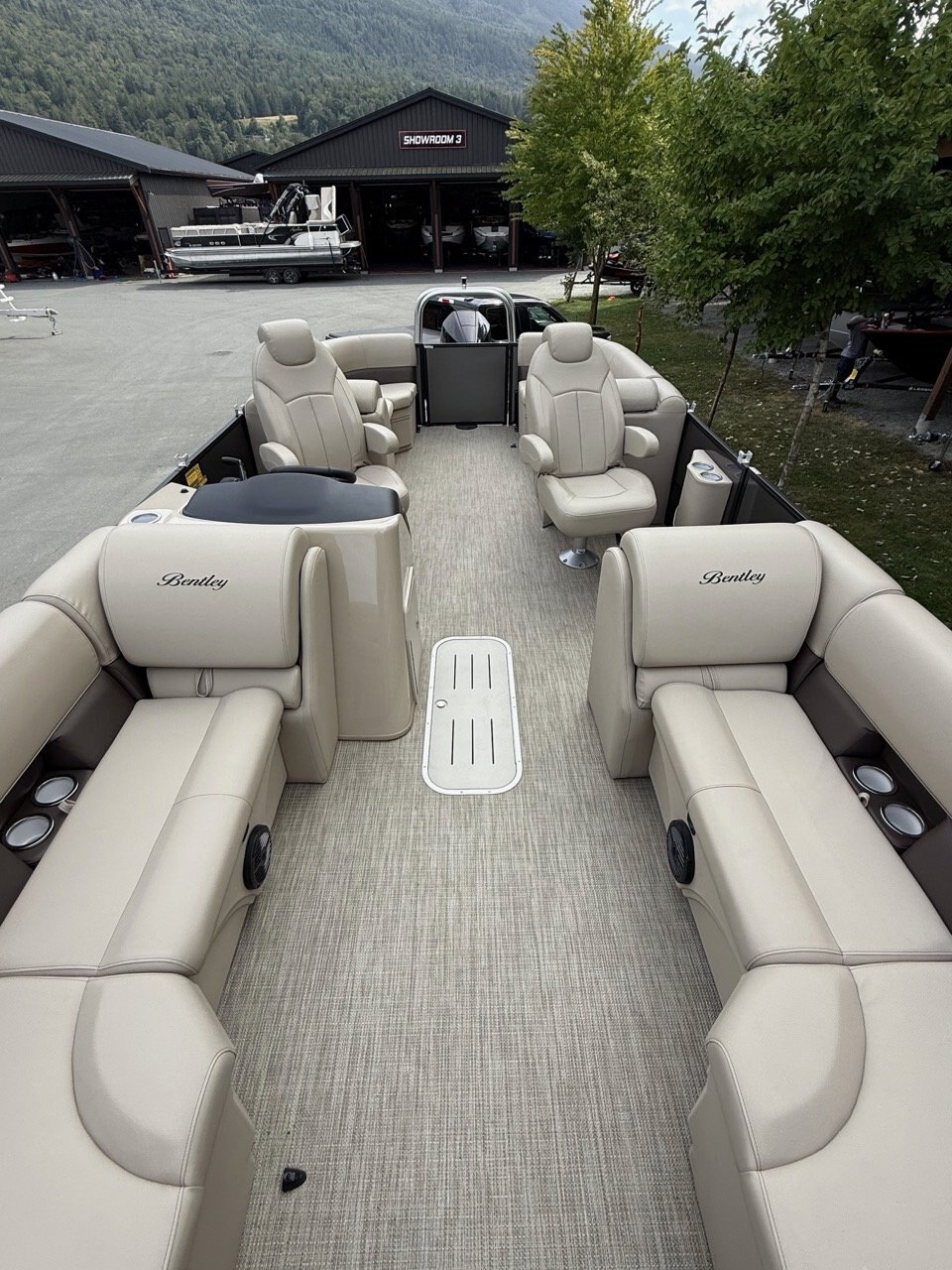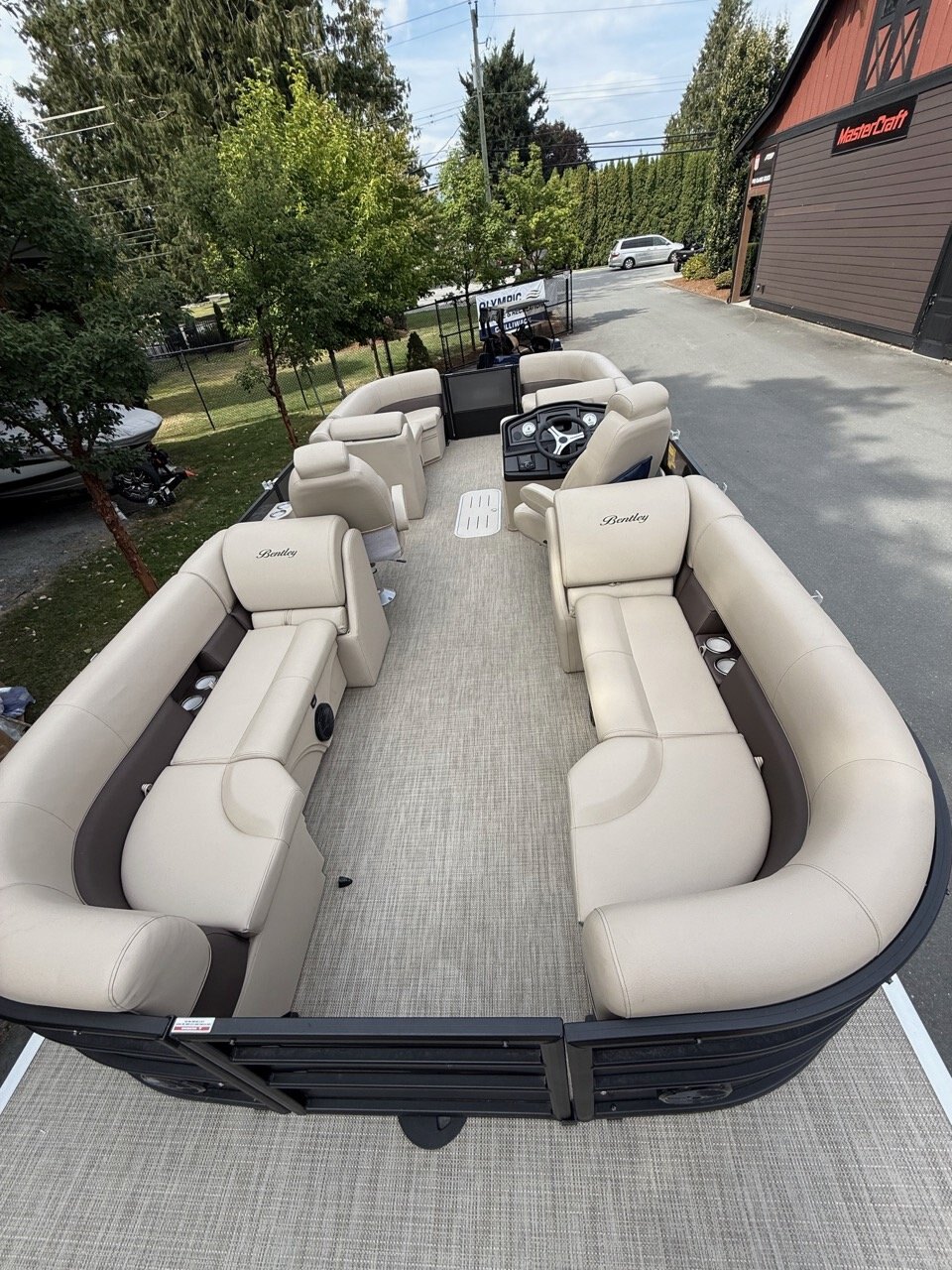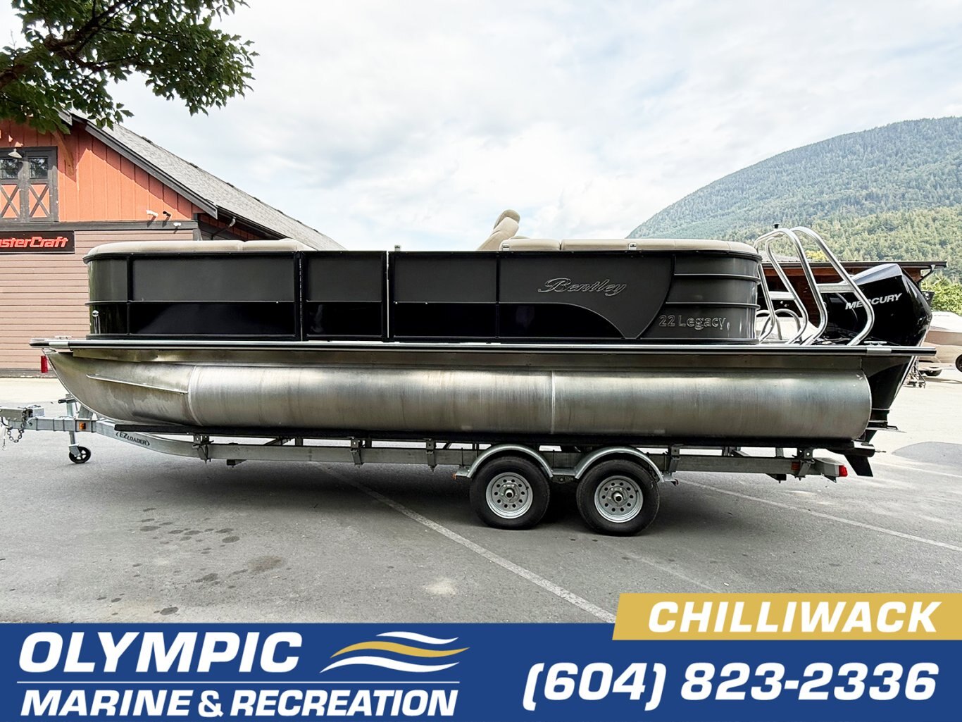 The 2023 Bentley Legacy 223 Navigator delivers luxury, function, and value elegantly wrapped in a classic center walk-through layout. This tritoon blends refined styling with performance and comfort, ideal for family outings, cruising, and diving fun.
