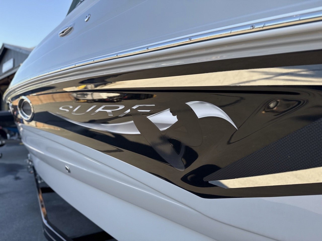 The 2023 Crownline 280 SS Surf is a high-performance, family-friendly watersports boat designed to deliver both big surf-worthy wake capability and the comfort you'd expect on cruising days. Luxurious, feature-packed, and engineered with surf/tow enthusiasts in mind, this model blends style, function, and power to appeal to serious boaters and families alike.