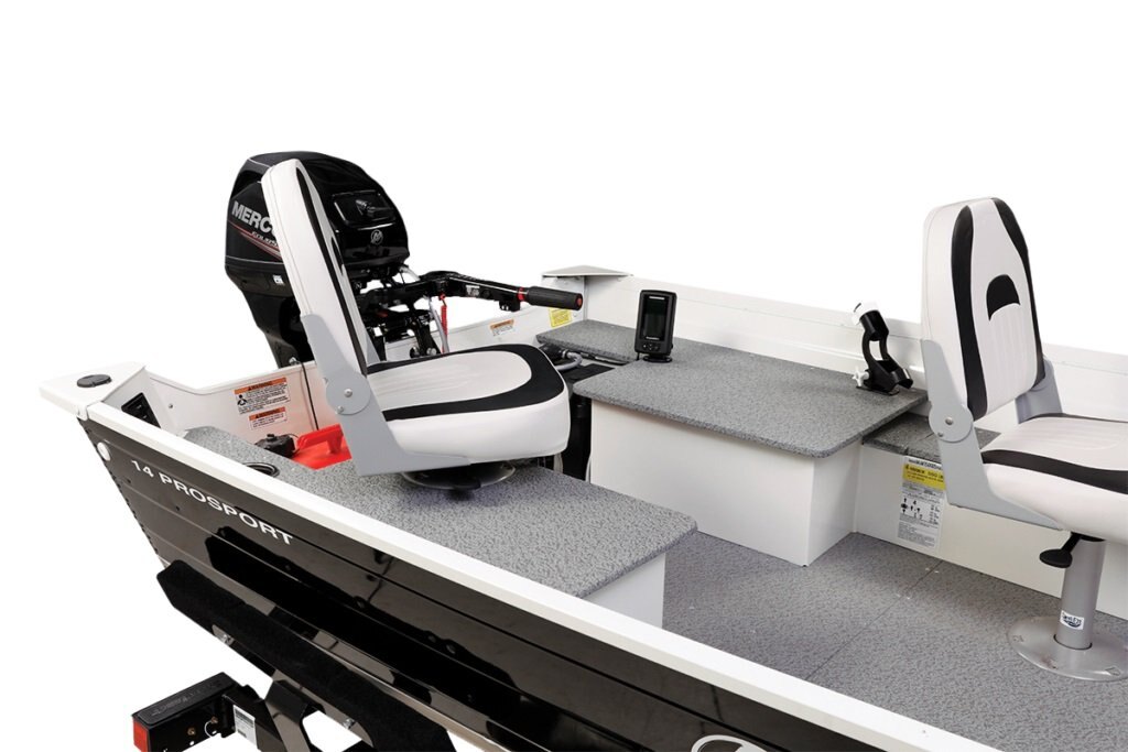 The 14 ProSport has everything you need: a lockable rod box, a big livewell, a huge front casting deck with storage and the vinyl interior makes it easy to keep clean. And, with this boat, you never have to jump over benches again! It makes fishin’ easy.