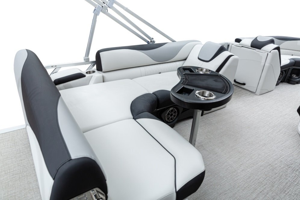 With an adjustable back rest, the rear sofa on the Q 21 RSS can face forwards or back, depending on where the action is.