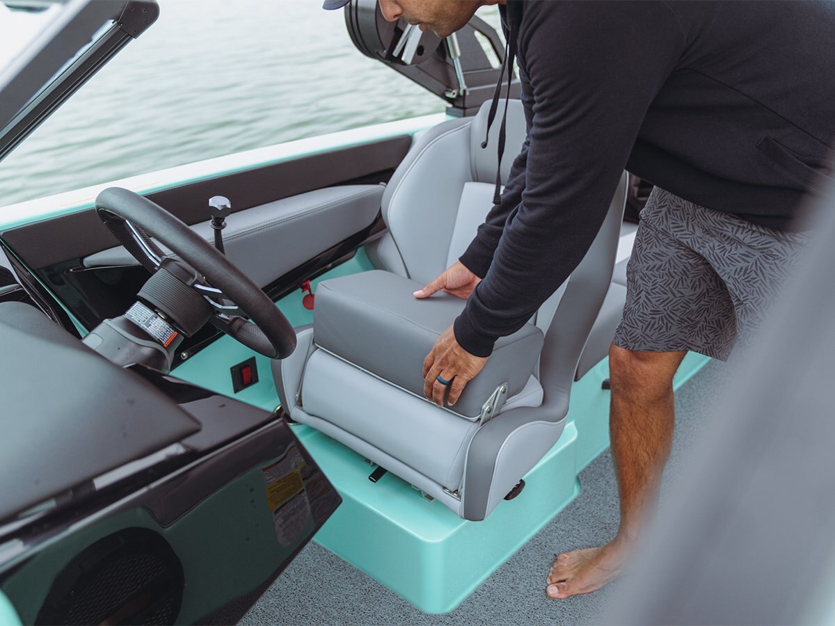 Experience comfort that is ready and reliable—the NXT22 features ergonomic seating and ample hinged storage that’s easy to access. Opt for the flip-down swimstep and CoolFeel vinyl to keep things 30% cooler even on the hottest summer days. |