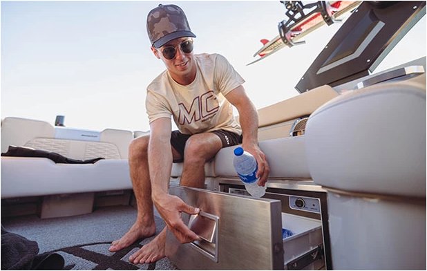 The X26 offers the most luxurious amenities on the market. From the available refrigerator and head to the ergonomic and patented transom lounge seats, this is an elevated towboat experience. All-new for 2023, enjoy the flip-down swim step that makes getting in and out of the water easier than ever before.