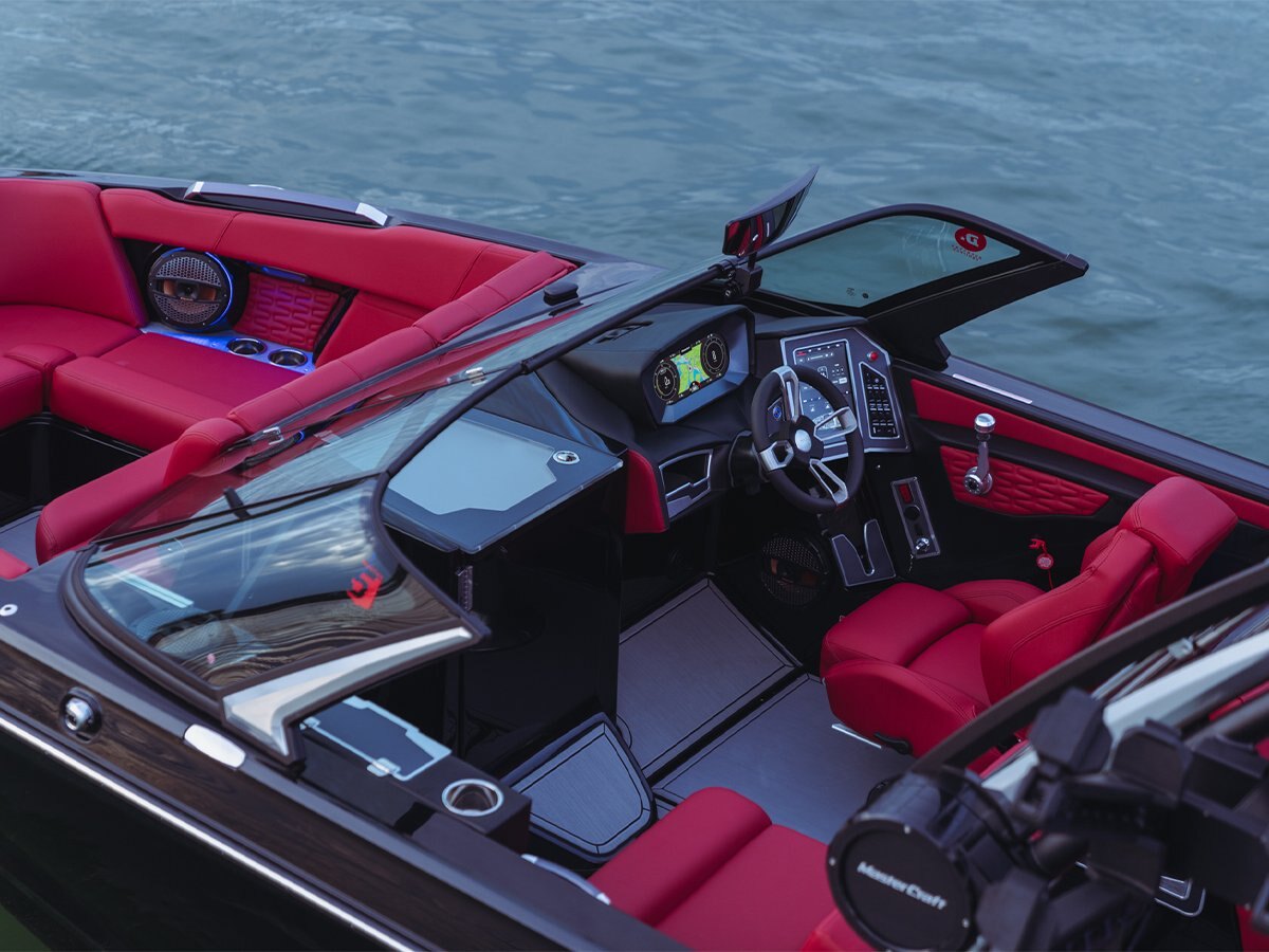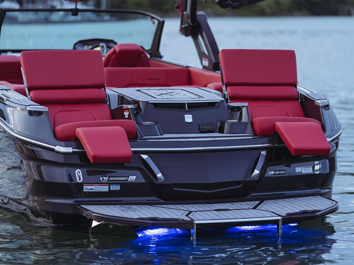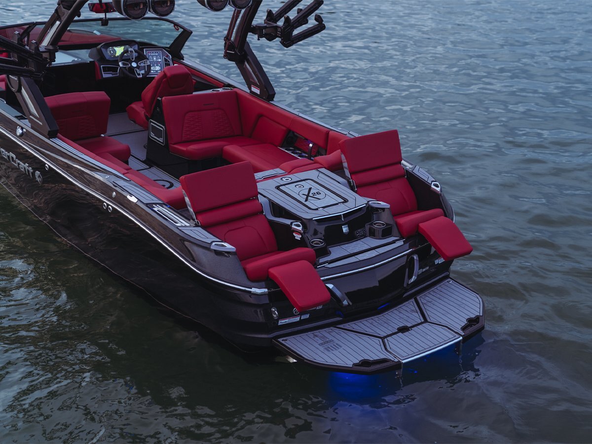 If you are in the market for the most luxurious amenities, the X26 is your solution. From the available refrigerator and head to the patented transom lounge seats, the X26 delivers the most elevated towboat experience on the water. To take the MasterCraft convenience and comfort to the next level and option your X26 with the industry’s most powerful stern thruster and all-new power board racks. |