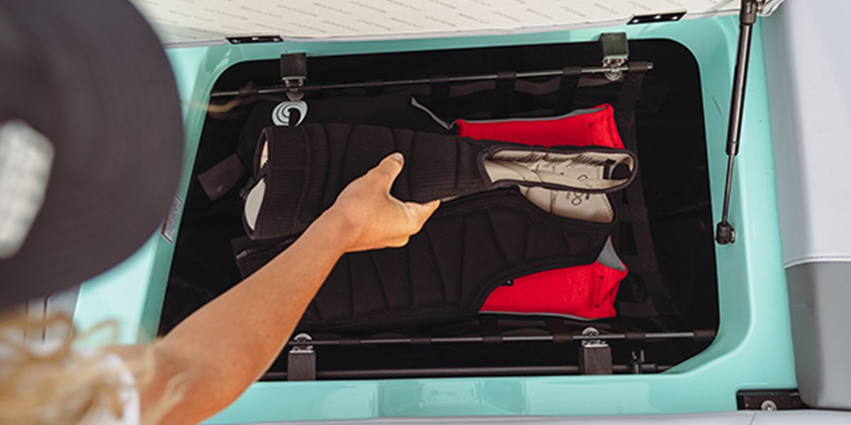 Experience comfort that is ready and reliable—the NXT22 features ergonomic seating and ample hinged storage that’s easy to access. Opt for the flip-down swimstep and CoolFeel vinyl to keep things 30% cooler even on the hottest summer days. |