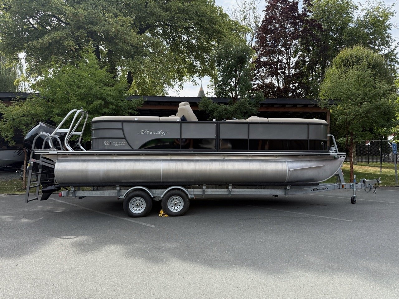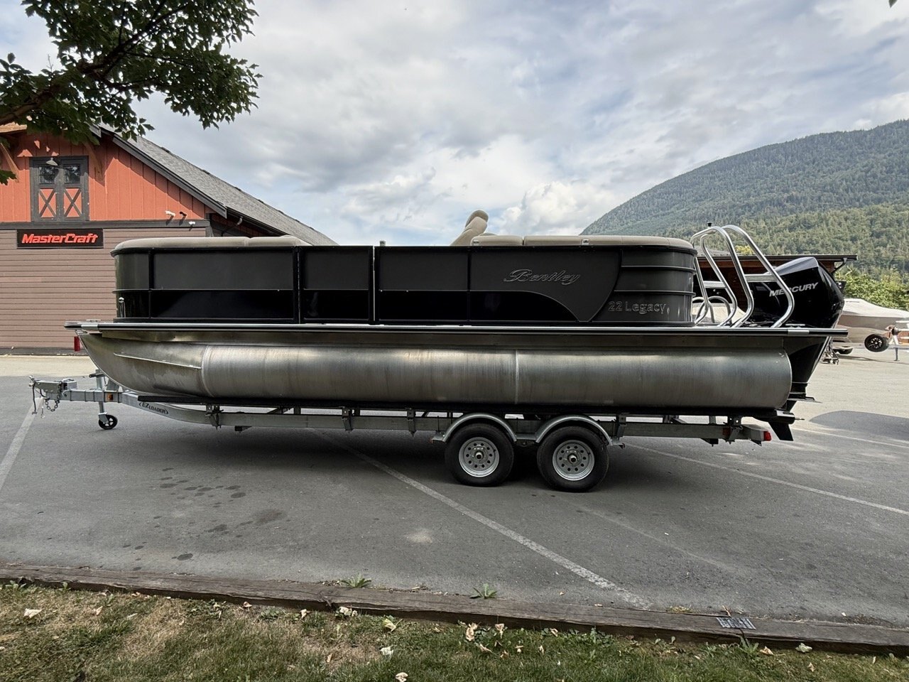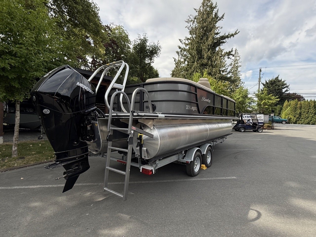 The 2023 Bentley Legacy 223 Navigator delivers luxury, function, and value elegantly wrapped in a classic center walk-through layout. This tritoon blends refined styling with performance and comfort, ideal for family outings, cruising, and diving fun.