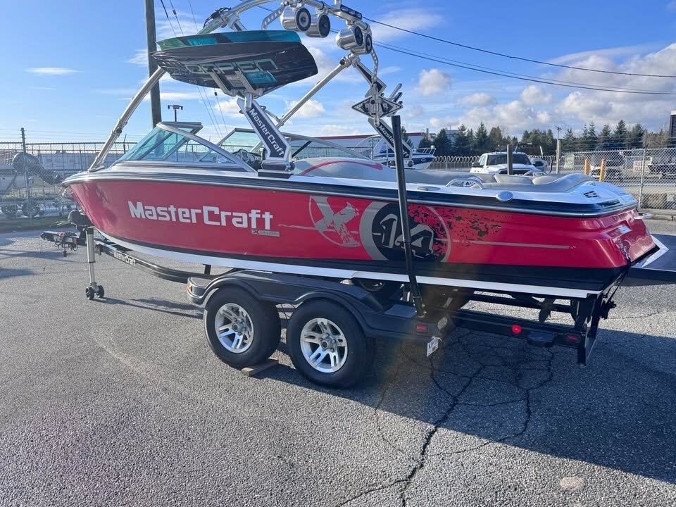 The 2010 Mastercraft X14 is a versatile watersports towboat, often featuring an IImore 5.7L (around 310-325 HP), fiberglass hull, and measuring about 21'4" long with an 8'3" beam, designed for both slalom skiing (ProStar hull) and wakeboarding with its V-drive setup and optional ballast system for large wakes. Key specs include capacity for 11 people, around 150L fuel, a wakeboard tower, and advanced features like Zero Off GPS speed control on some V-drive (X14V) models, making it great for various watersports.
