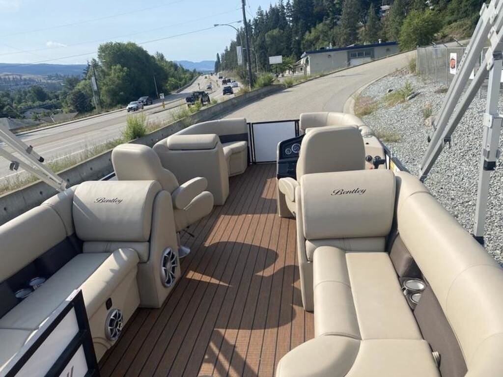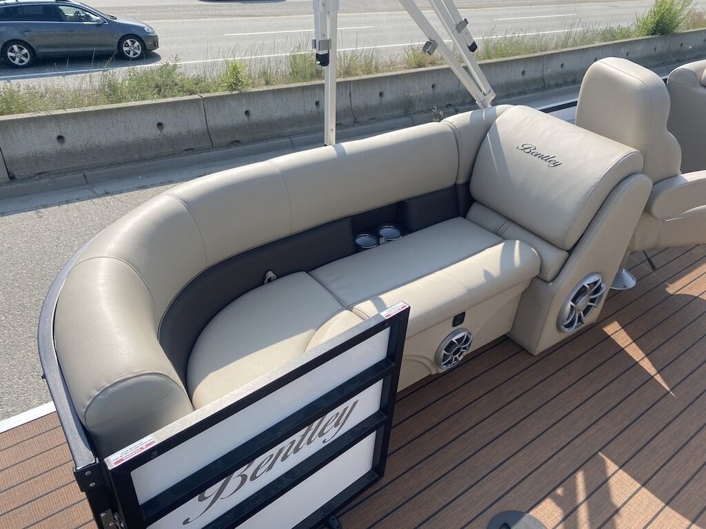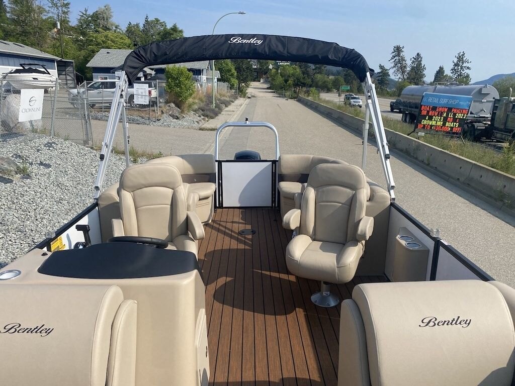 2023 Bentley Pontoon Legacy 220 Navigator The Bentley Legacy Series invites you to elevate your pontoon experience, offering a range of models that seamlessly blend comfort, versatility, and timeless elegance. Indulge in luxury and comfort on the water and discover the unparalleled quality and design that Bentley Pontoons is renowned for. The Legacy Navigator boasts a classic center walk-thru floor plan, complete with dual captain chairs and an extended rear deck. This model offers unparalleled performance, enhanced style, and exceptional fit and finish. With the Navigator, you'll be able to navigate the waters with ease and enjoy all the fun that comes with it! Available in 20', 22', and 24' models.