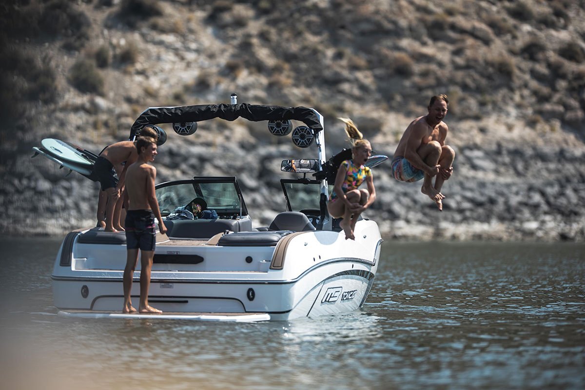 The MB Sports B52 Series was specifically designed in the early 90’s for Wakeboarding enthusiasts demanding more on the Water. Using our unique deep v hull, we’ve been able to crossover into the wakesurf world, creating one of the best waves for surfing. With our easy-to-use surf system and 30-year pedigree on the water, you’ll be spending less time tweaking and “dialing” and more time surfing #thewave.