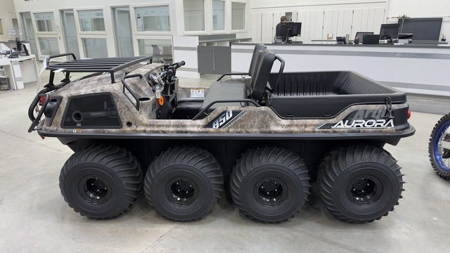 2023 Argo® Aurora 850 HuntMaster CamoYOU\'LL NEED A BIGGER TROPHY WALL. This is where every epic hunt begins. Yes, its the woods-wandering, range-crossing, swamp-surfing, amphibious Aurora 850 HuntMaster. This one was built to go on the prowl. For starters, you simply cant go wrong with the massive all-new LX 850 V-Twin engine that powers this big-game stalking machine. Youll have no problem getting out to that spot known only to you. Its got room for your whole hunting party, as well as for any new acquisitions that need hauling back. Theres a reliable Admiral transmission, 25\'\' low-pressure tires, TrueTimber® Prairie camo and all the makings of a happy end to your hunt. Features may include: LX 850 ENGINE All-new ODG V-Twin Fan Cooled engine is specifically designed with advanced technology and created to deliver optimal performance, power and torque when you need it, while providing smoother, quieter and easier starting operation. Available on Aurora Series. INSTANT TORQUE CLUTCH (ITC) The ARGO Instant Torque Drive System (ITDS) dramatically improves low-end torque and increases acceleration. The Instant Torque Clutch (ITC) is designed to provide the optimal gear ratio, shifting seamlessly throughout the full range to utilize the massive torque and power of our engines. ADMIRAL TRANSMISSION WITH APS The ODG Admiral transmission with ARGO Progressive Steering (APS) is an innovation in braking force application to the transmission steering differential. By adding a spring element between the handlebars and the brake system, we have achieved a progressive dual-rate steering system. This development, combined with the Admiral transmission, is a technological milestone that gives the ultimate driver experience. Steering events are effortless and confidence-inspiring, offering the smoothest turning available in an ARGO XTV. An ARGO is as fun and comfortable to drive as any UTV. ARGO PROGRESSIVE STEERING (APS) APS is an innovation in the area of braking force application to the transmission steering differential. By adding a spring element between the handlebars and the brake system we achieved a progressive, dual-rate steering system. Steering events are now effortless with an increase of 4X wider range of steering motion, offering the smoothest turning available in an ARGO XTV. APS makes it as fun and comfortable to drive as any UTV. REDUCED UNDERHOOD TEMPERATURE To ensure comfort for the operator and passengers, heat-reflective and absorptive material is integrated into the firewall. A composite exhaust shroud goes one step further and effectively redirects heat while producing a subtle note from the exhaust. 25\'\' TIRES WITH AIRLOCK STEEL RIMS The Huntmaster has 25 XT-117 tires with AirLock steel rims. The chevron treads maximize your power in thick mud and increase your propulsion in whatever waterway you decide to drive in. TRUETIMBER PRAIRIE CAMO ARGO is proud to use TrueTimber® Prairie camo. TrueTimber utilizes the latest technology to create the industry\'s most realistic camouflage patterns. Make sure your hunt is successful this year with ARGO. Go where others can\'t. AMPHIBIOUS BODY Yes, this XTV floats. The one-piece amphibious lower body is the signature ARGO design feature. Its smooth, durable underbody floats over potential snags, stumps and outcrops, as well as swamps and water. WINCH AND BRUSHGUARD Pulling power for when you need it most. ARGOs winch mounts on the front to assist with high-angle extractions of equipment or debris. Available for each Aurora model as an genuine ARGO accessory with 3,500 lb capacity.