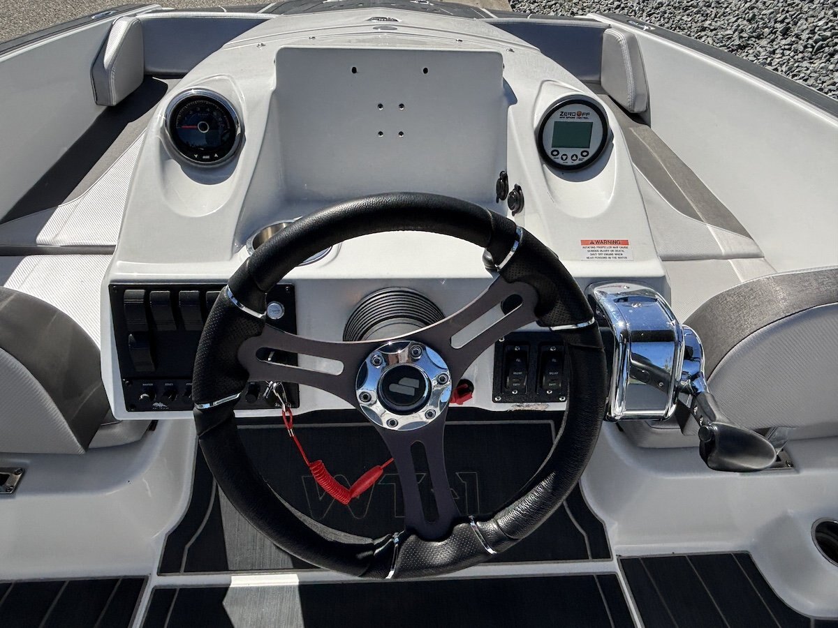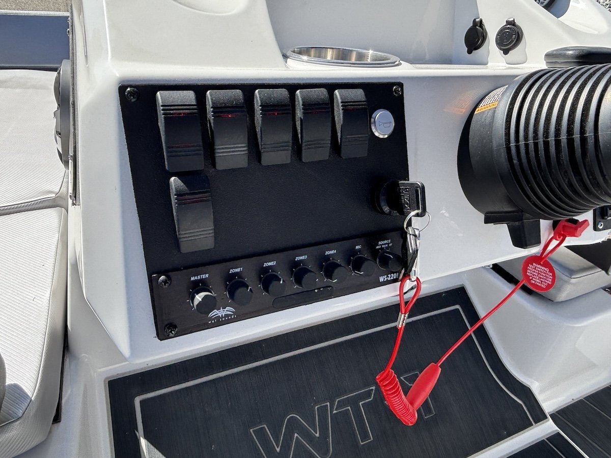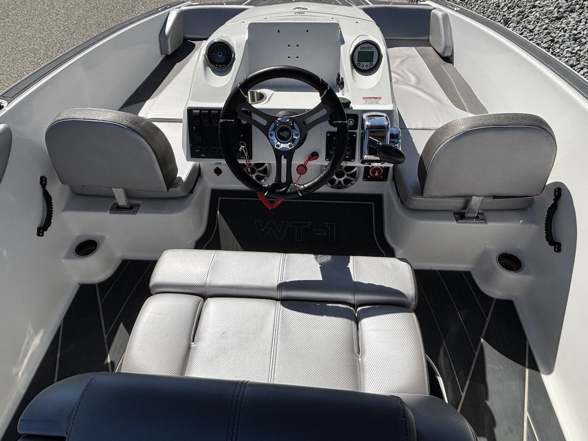 Heyday the WT-1 affordable by keeping it simple. It has what you need to get the job done, but not one shred more. It comes with a trailer, pop-up cleats that won’t snag tow ropes, and nonskid decking. It also forgoes an expensive onboard operating system in favor of a tablet-based dash system that pairs with the boat through an app or Bluetooth. The WT-1 comes with a dash mounting for a 10-inch Android tablet.