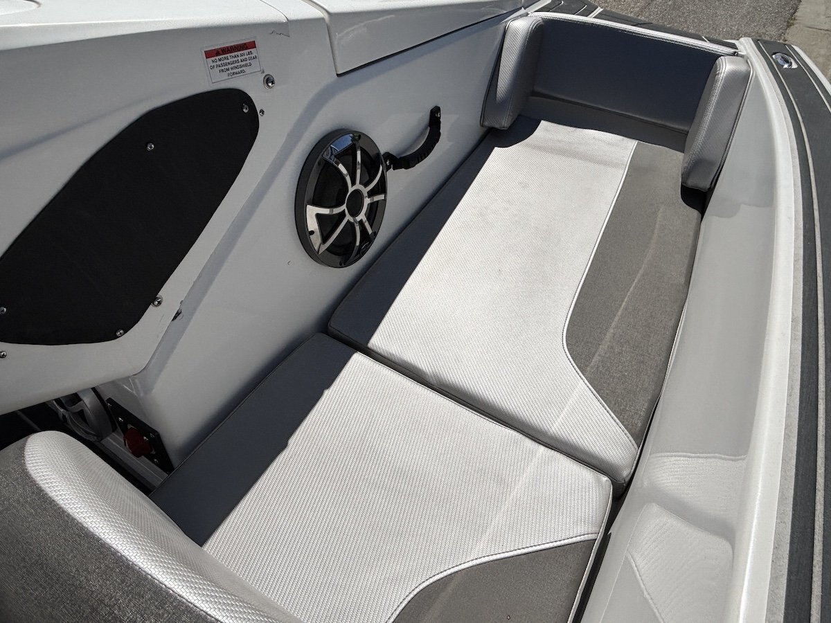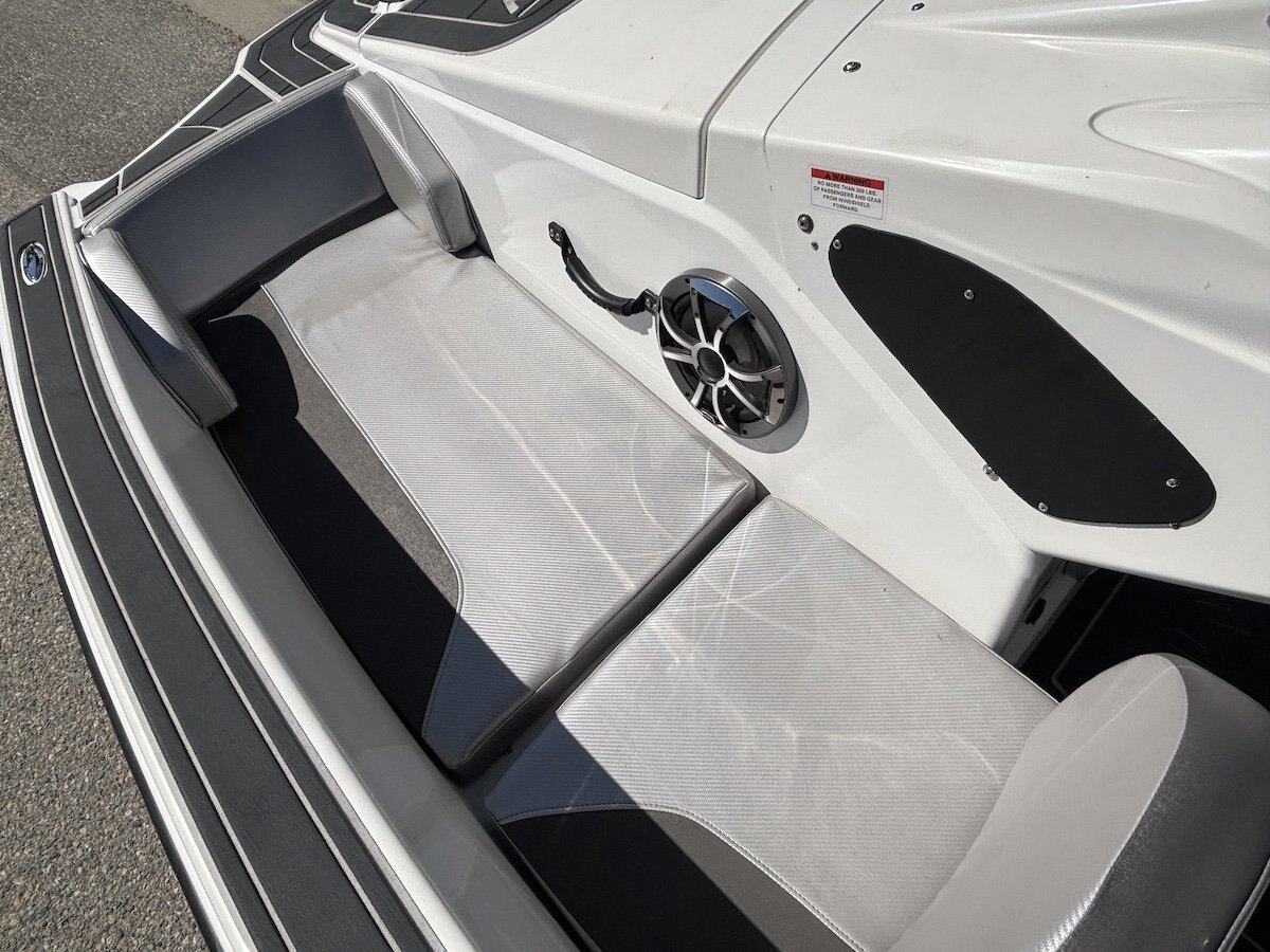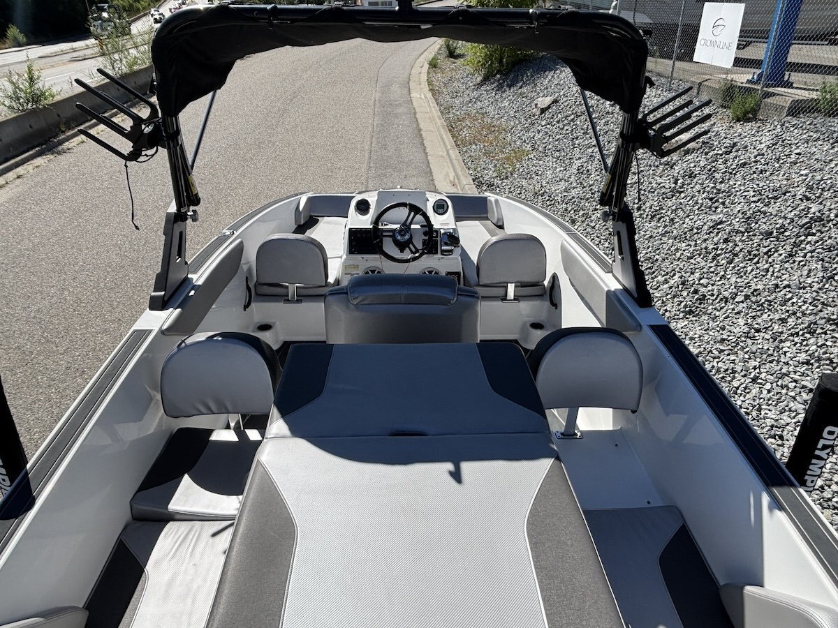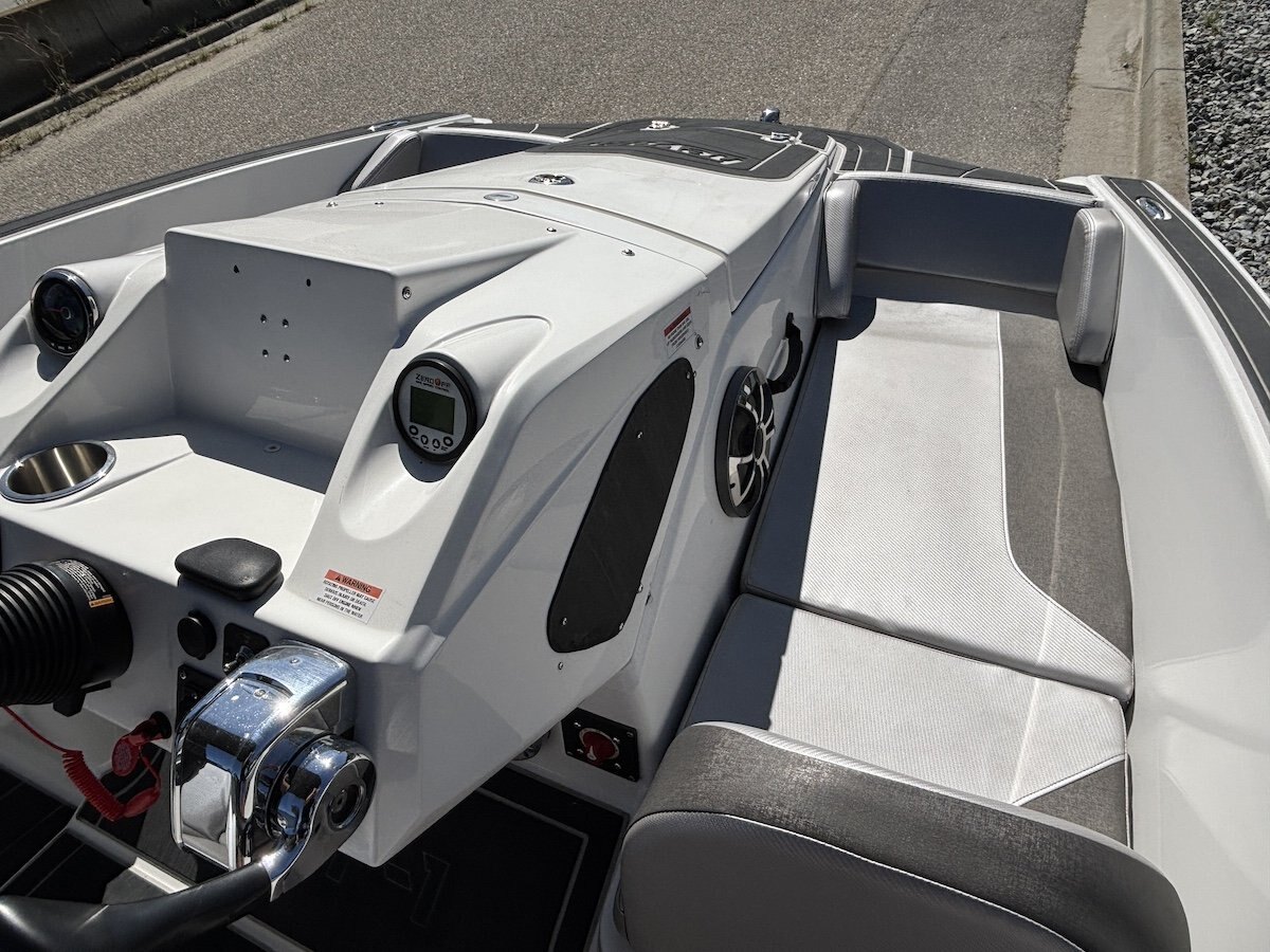 Heyday the WT-1 affordable by keeping it simple. It has what you need to get the job done, but not one shred more. It comes with a trailer, pop-up cleats that won’t snag tow ropes, and nonskid decking. It also forgoes an expensive onboard operating system in favor of a tablet-based dash system that pairs with the boat through an app or Bluetooth. The WT-1 comes with a dash mounting for a 10-inch Android tablet.