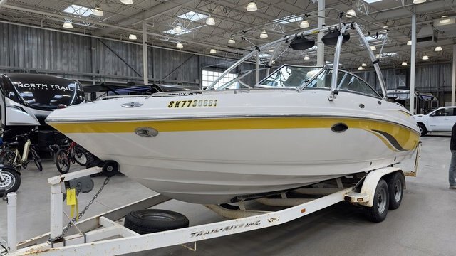 The 2004 Chaparral 230 SSi is a versatile and stylish bowrider, perfect for both leisurely cruises and active watersports. With a length of 23 feet and a beam of 8.5 feet, it offers ample space and stability on the water. The boat is powered by a MerCruiser 350 MAG MPI engine, delivering 300 horsepower, ensuring reliable performance for various activities. Key features of the 230 SSi include comfortable contoured bow seating with fold-up armrests, a full sunpad with walk-through, and snap-in carpet throughout the cockpit. The boat\'s design incorporates Chaparral\'s patented F.A.S.T. Tab hull, enhancing performance and fuel efficiency. For added convenience, it comes equipped with a bimini top, stainless steel hardware, and a tandem axle galvanized trailer. Whether you\'re seeking relaxation or adventure, the 2004 Chaparral 230 SSi offers a blend of comfort, performance, and style for all your boating needs.